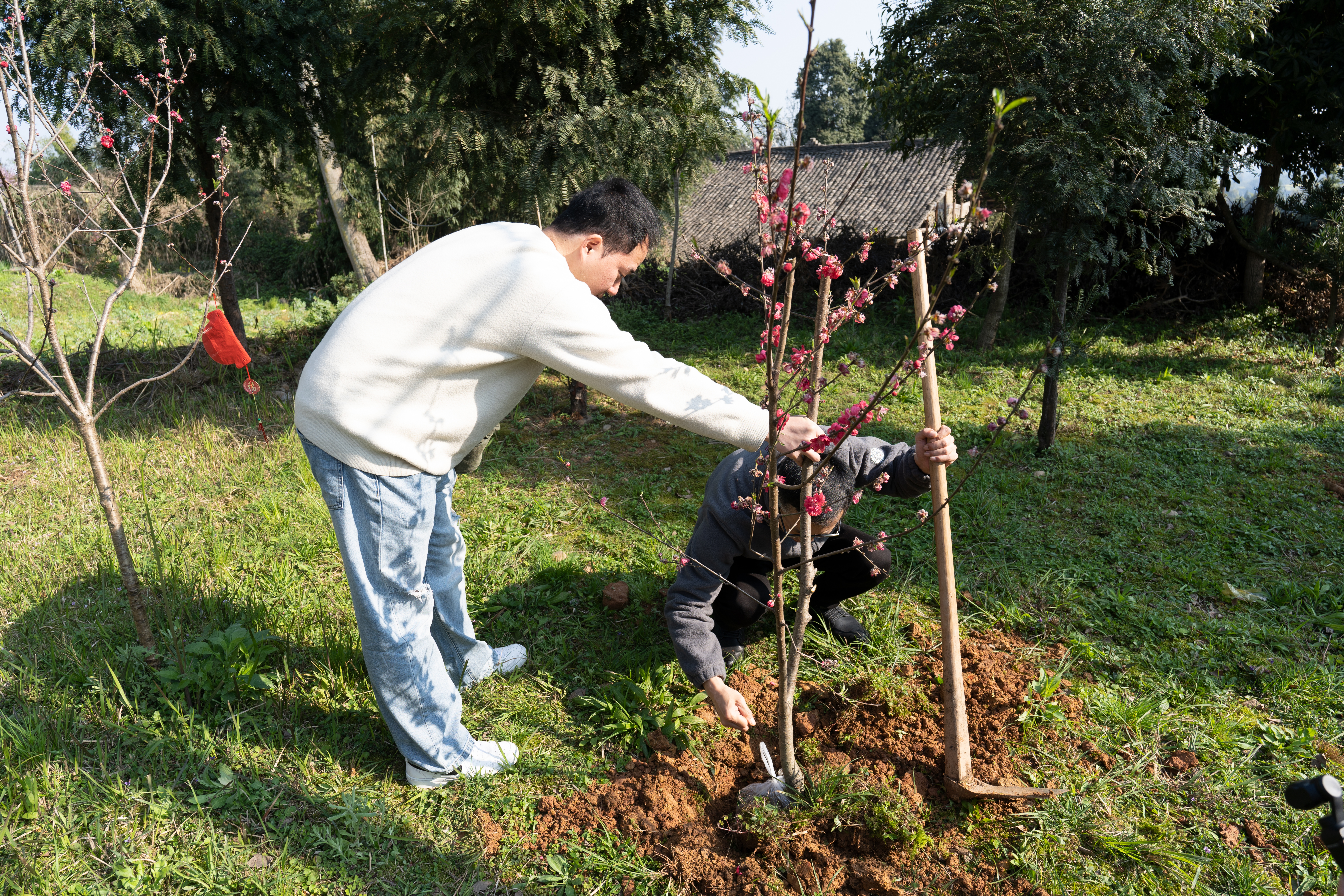 雅安市名山区检察院开展植树活动,检察干警们分工协作,将一棵棵幼苗栽进泥土中。 张一鸣 摄