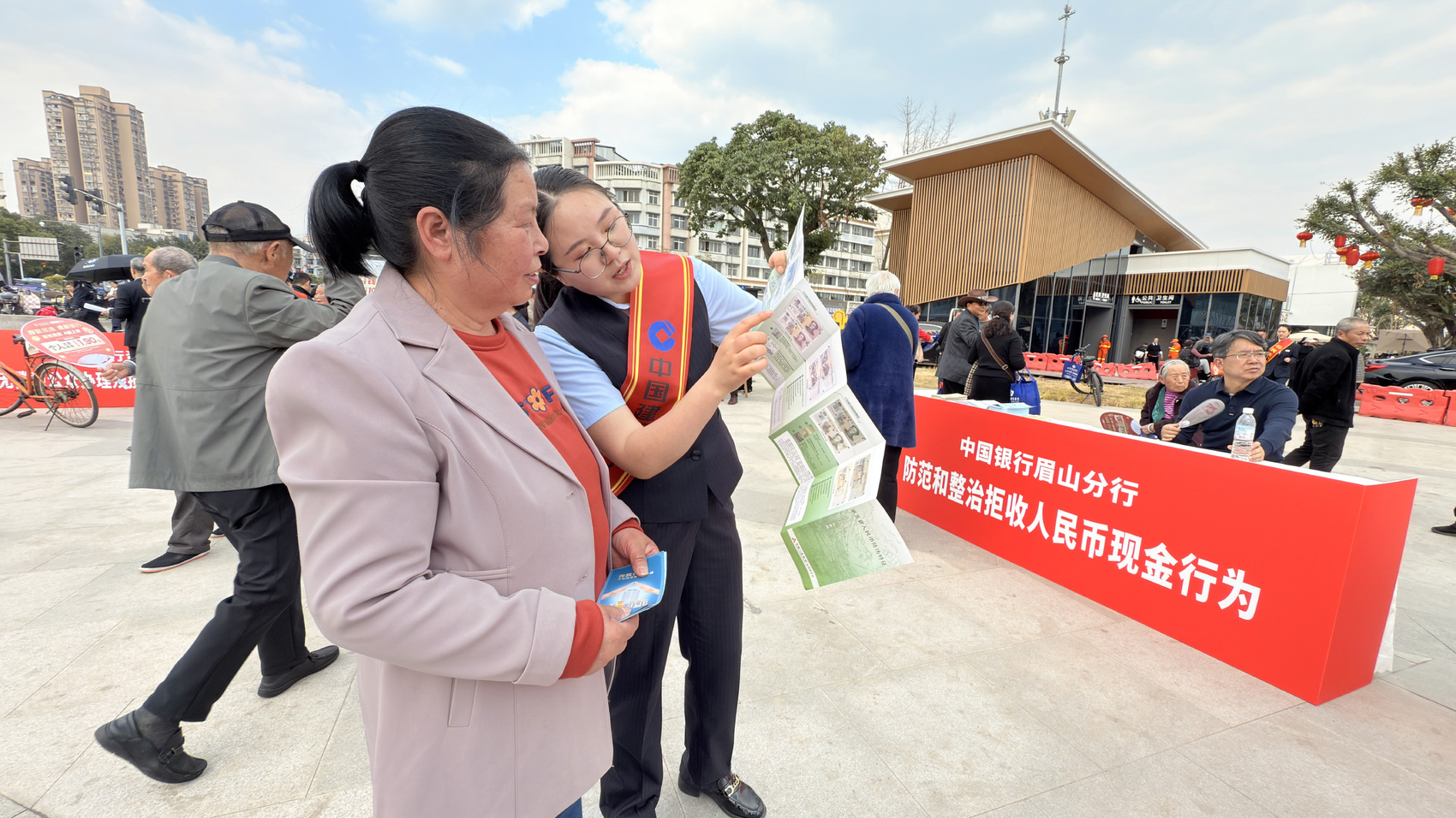 此次活动汇聚了成德眉资四地金融机构力量,在现场设置多个宣传展位,通过“宣传资料发放+互动游戏体验”相结合,集中开展人民币知识普及。建行资阳分行专门设立宣传咨询台,工作人员向过往市民发放反假货币、爱护人民币、人民币图样使用管理等宣传折页。他们向市民展示如何识别假币,讲解残缺污损人民币兑换办法,用专业、暖心、有趣的方式,把反假知识、现金服务送到市民身边。