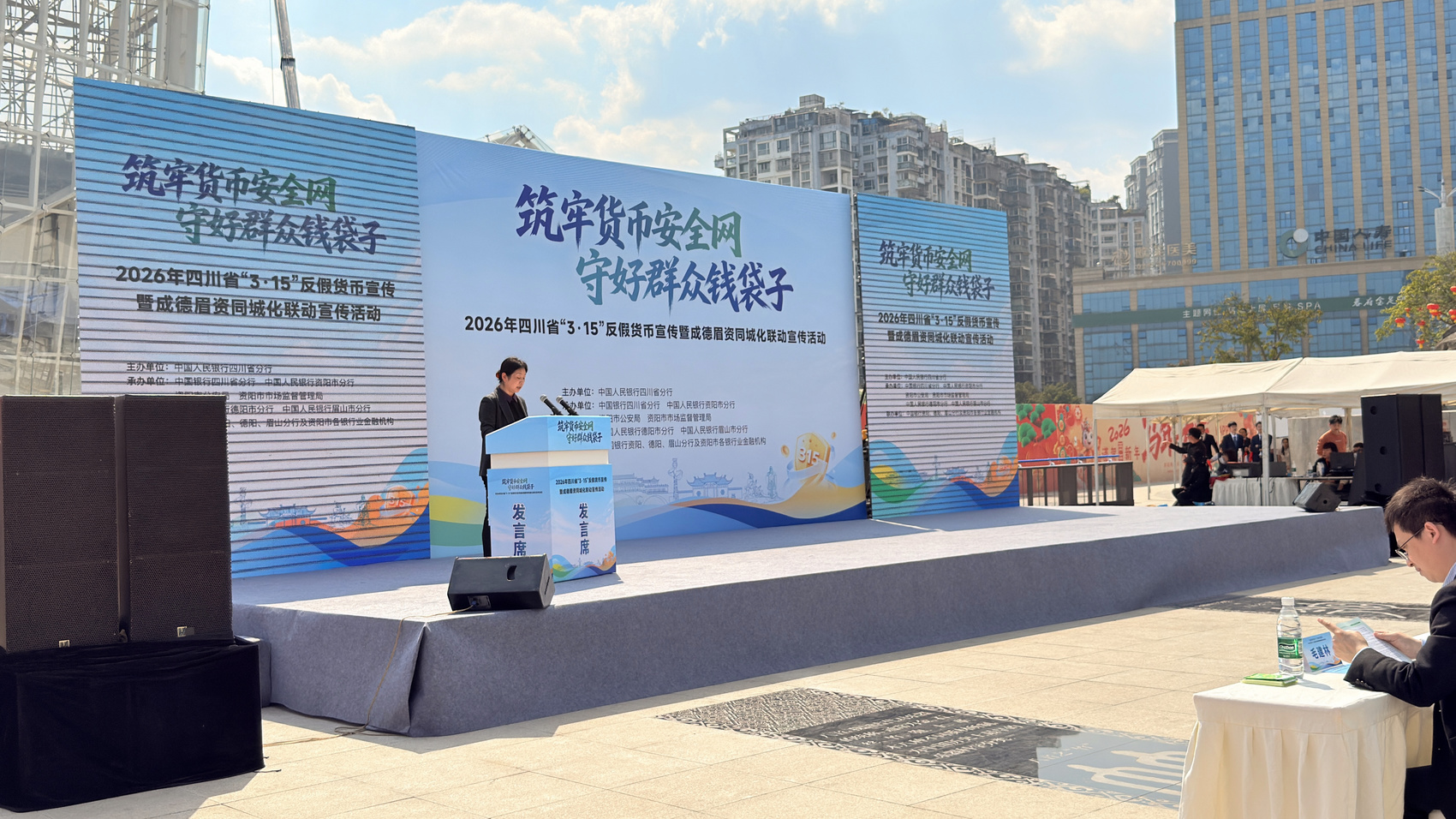 3月11日下午,由中国人民银行四川省分行主办的2026年四川省“3·15”反假货币宣传暨成德眉资同城化联动宣传活动,在资阳市雁江区苌弘广场启动。本次活动以“筑牢货币安全网 守好群众钱袋子”为主题,旨在践行金融为民理念,扎实做好人民币现金服务,普及人民币知识,增强公众风险防范意识。