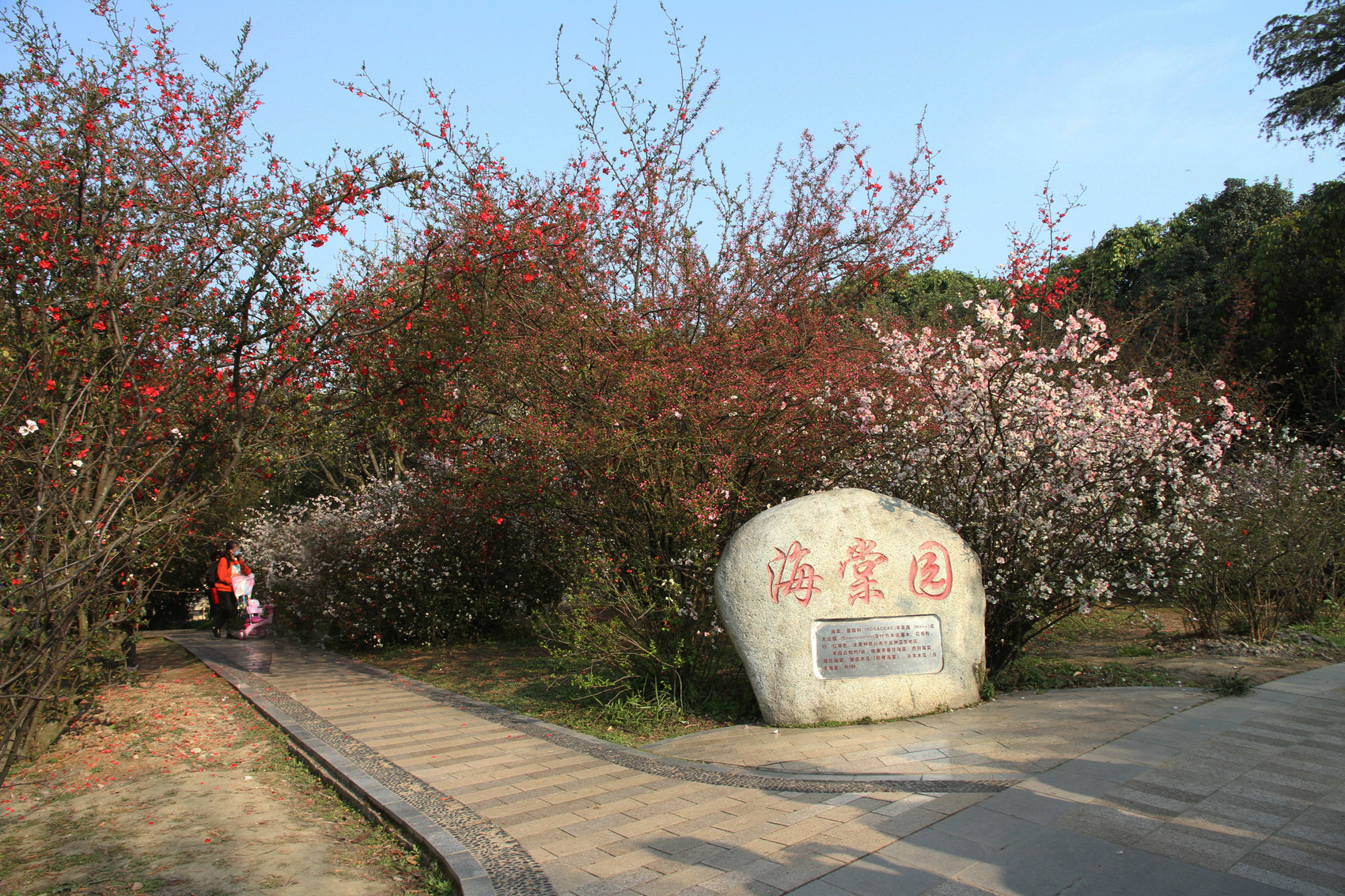 如今,这份千年的海棠情缘在植物园里延续着。海棠专类园占地约3000平方米,共收集垂丝海棠、西府海棠、湖北海棠等5个海棠种类,以及红丽、绚丽、凯尔斯等多个来自北美的海棠品种。