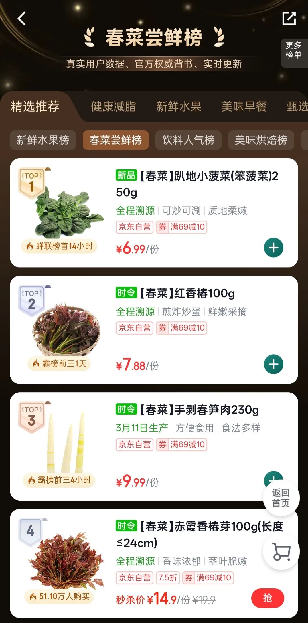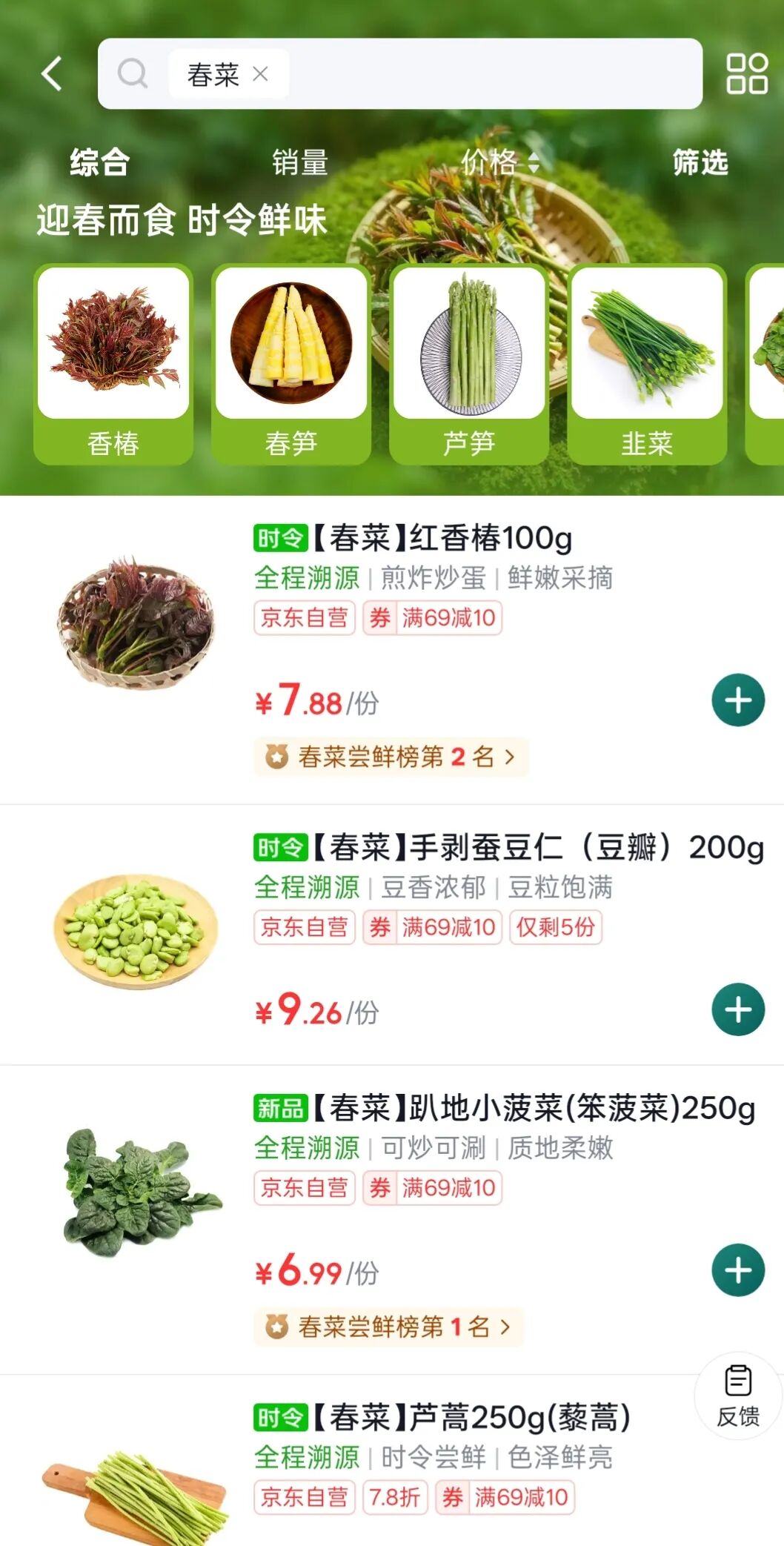 为满足消费者对春日鲜味的期待,京东七鲜超市今年较行业提前近一个月上线春菜,1月19日便开启了“春日寻鲜图鉴”。除了时间上领先,春菜品种也更为丰富,目前已上市40余款当季春菜。