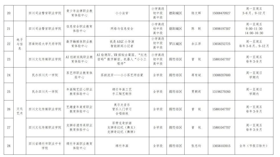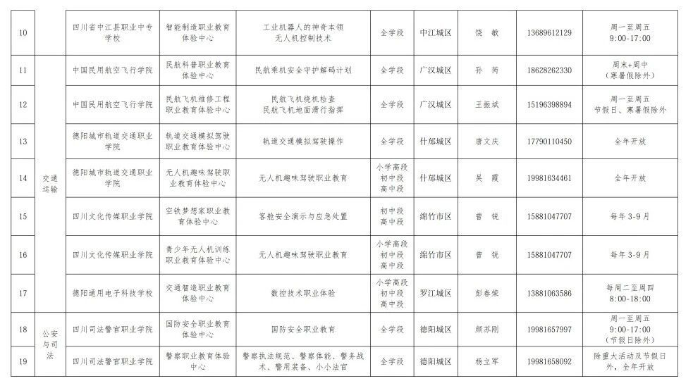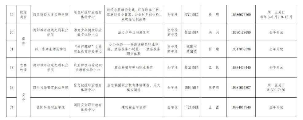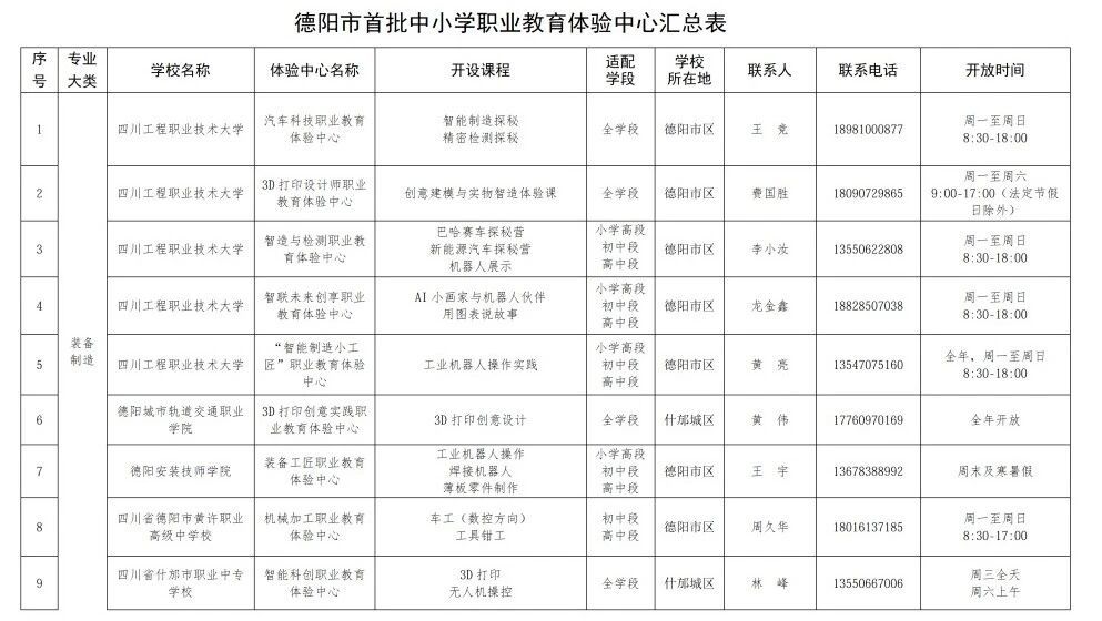 附:德阳市中小学职业教育体验中心汇总表