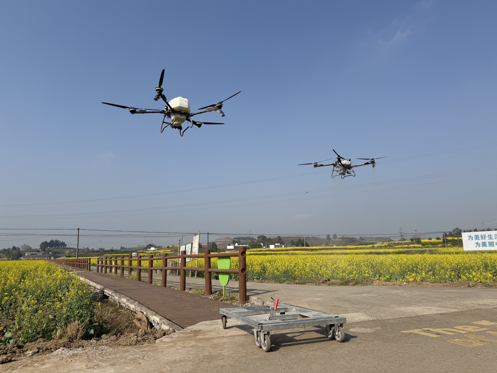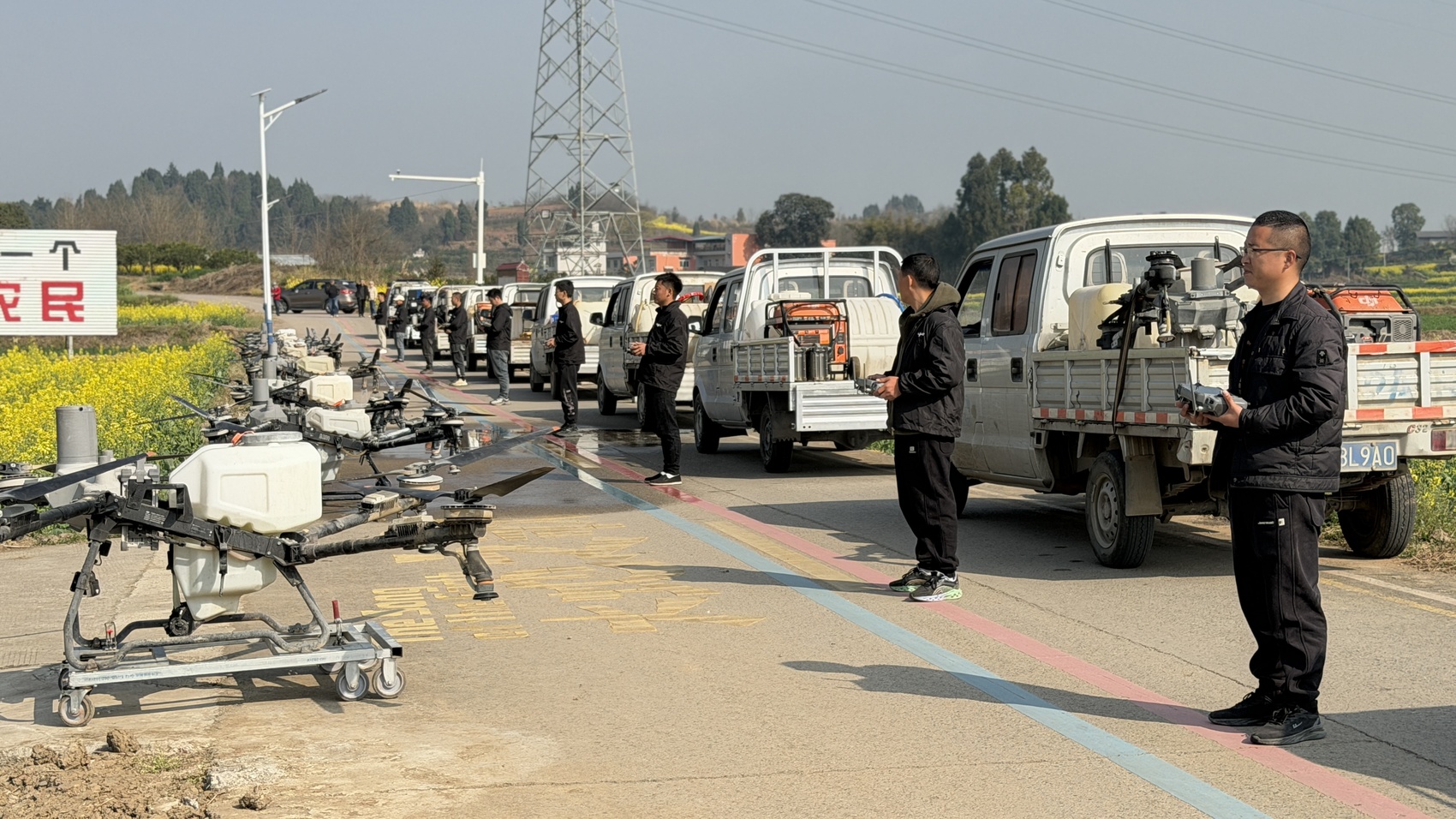 3月初,德阳市罗江区鄢家镇,油菜花铺就的金色“地毯”一直延伸到山边。星光村的田坎上,12台植保无人机列队待发。