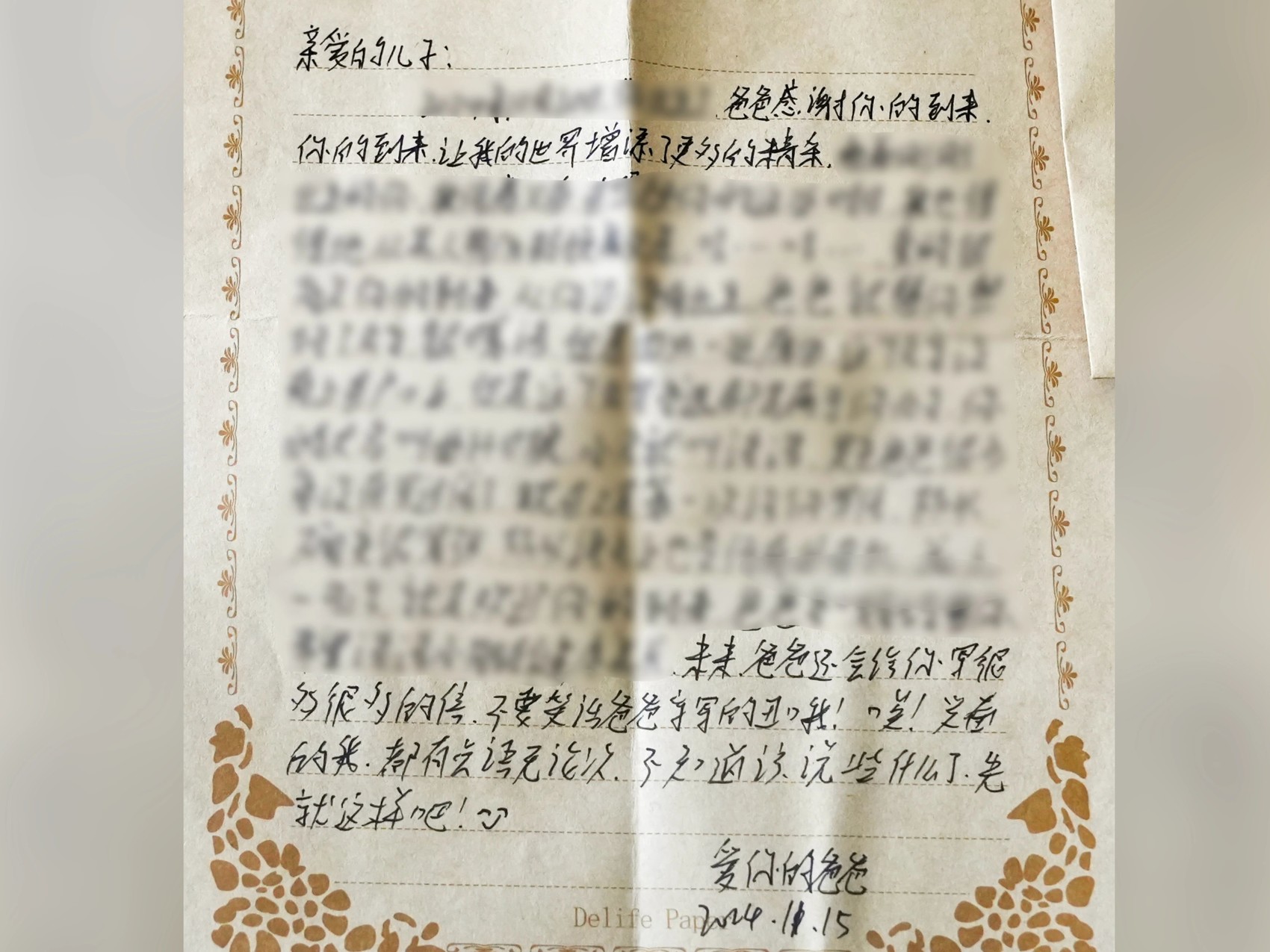 “儿子,你的到来让我的世界增添了更多的精彩,爸爸妈妈爱你,希望你健康成长,爸爸还会给你写很多很多的信。”2024年10月,银小强的儿子出生。初为人父的喜悦,是那样真切而滚烫。但他更知道,自己是一名刑警,肩上扛着守护一方平安的重担。由于妻子和儿子长期在乡镇工作生活,陪伴成了一种奢侈。于是,银小强拿起笔,决定用写信的方式,陪着儿子慢慢长大。