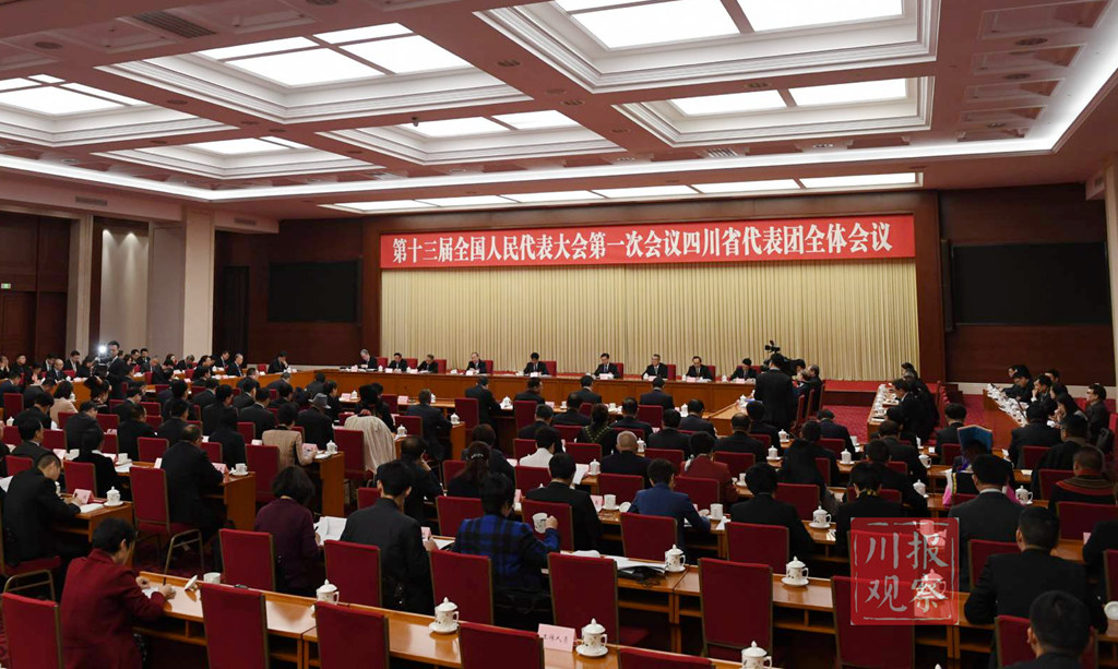 3月7日,十三届全国人大一次会议四川代表团在驻地举行全体会议和小组会议,审议《中华人民共和国宪法修正案(草案)》。最高人民检察院检察长曹建明,省委书记、省人大常委会主任、代表团团长王东明,省委副书记、省长、代表团副团长尹力参加审议并发言。