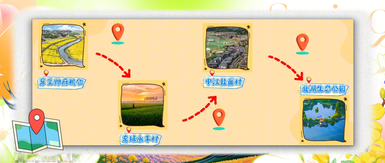 第三条是田园野趣游。乐至帅府粮仓沃野流金,东坡永丰村稻香满径,中江挂面村烟火绵长,北湖生态公园绿意盎然。一路看山望水、听风赏景,尽享悠然春日时光。