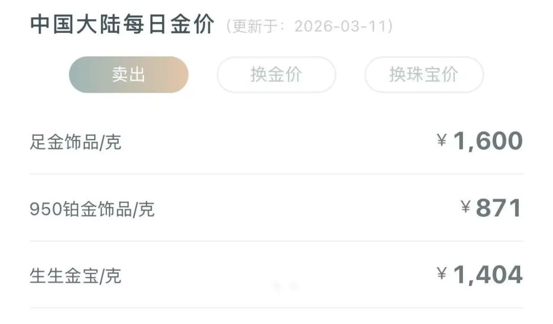 李女士告诉记者,2023年金价约400元/克时,正在上学的16岁儿子看新闻预判金价上涨,提醒她囤黄金。