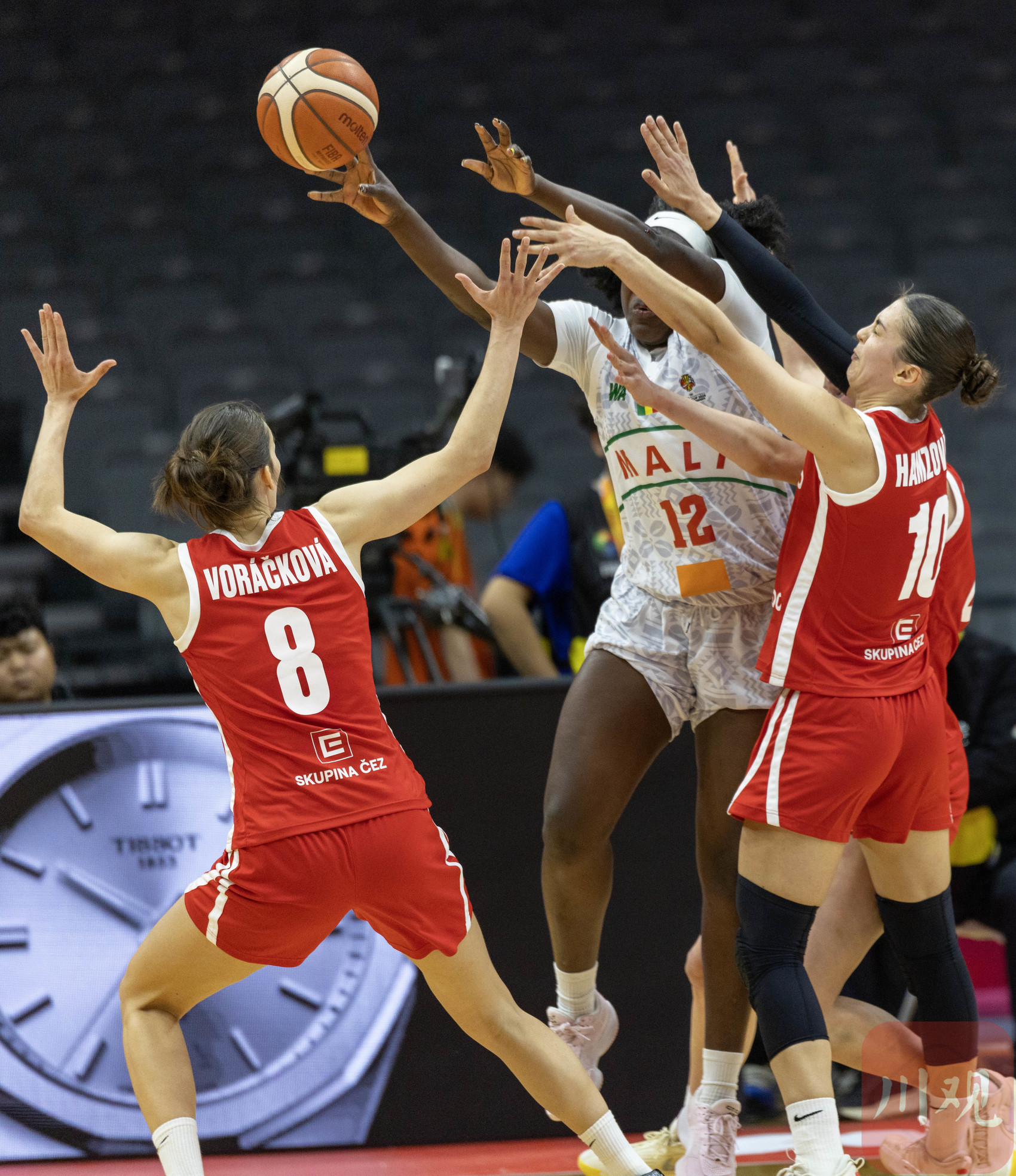 2026年3月12日,在武汉举行的2026年女篮世界杯资格赛,马里女篮(白色球衣)对阵捷克女篮,最终,马里女篮77:64战胜捷克女篮。