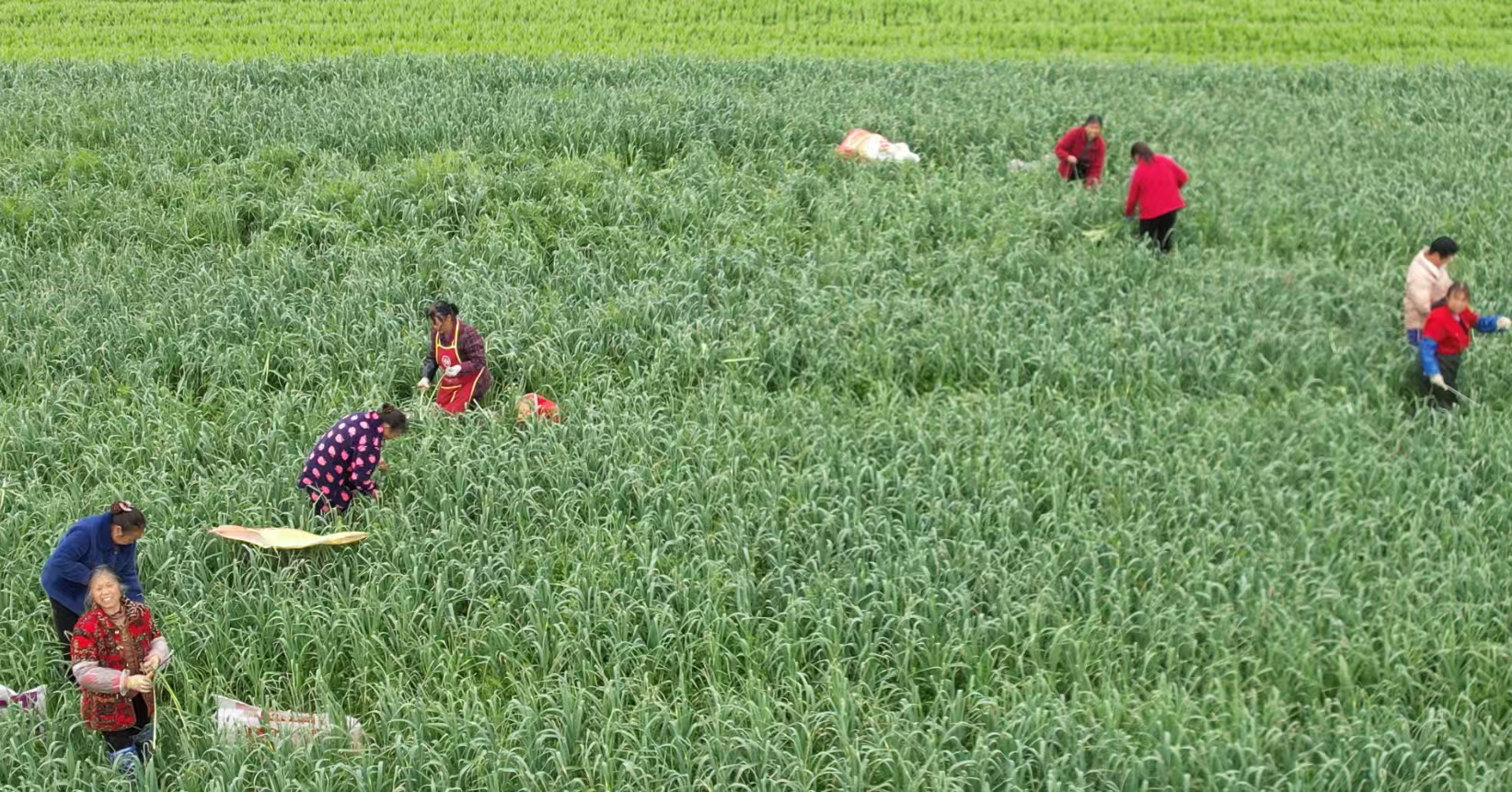 村民正在蒜薹地里忙着收割。 但浩南 摄