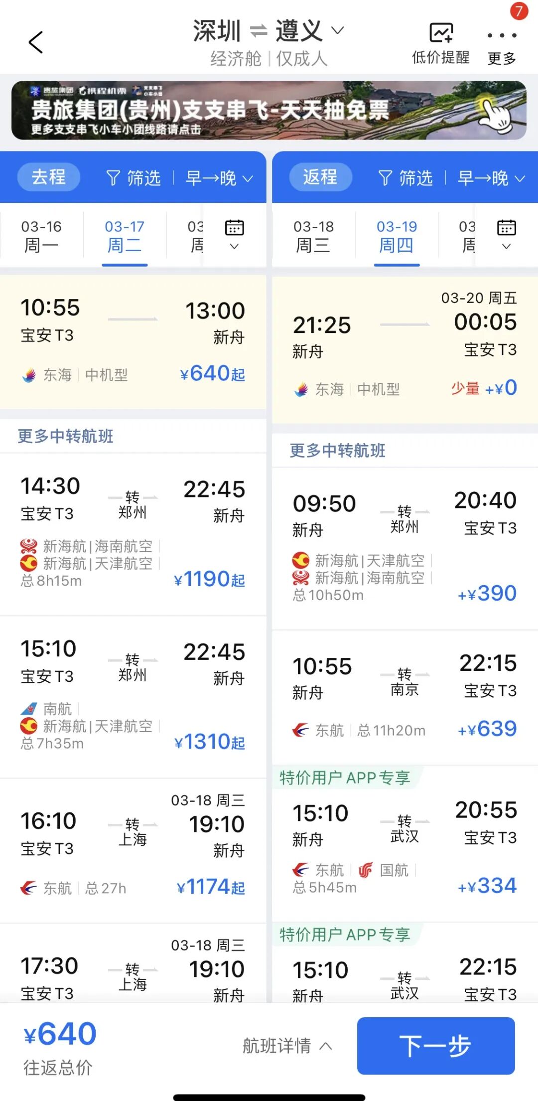 往返机票价格在