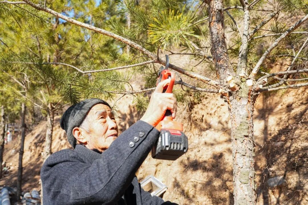 76岁的高华处正挥动着剪刀修剪树枝