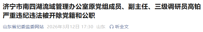据济宁市纪委监委消息:日前,经济宁市委批准,济宁市纪委监委对济宁市南四湖流域管理办公室原党组成员、副主任、三级调研员高铂严重违纪违法问题进行了立案审查调查。