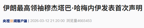 据央视新闻消息,伊朗新任最高领袖穆杰塔巴·哈梅内伊12日通过国家电视台发表首次声明,内容主要围绕伊朗国内团结、对外冲突、地区关系以及对已故领袖阿里·哈梅内伊的悼念等。