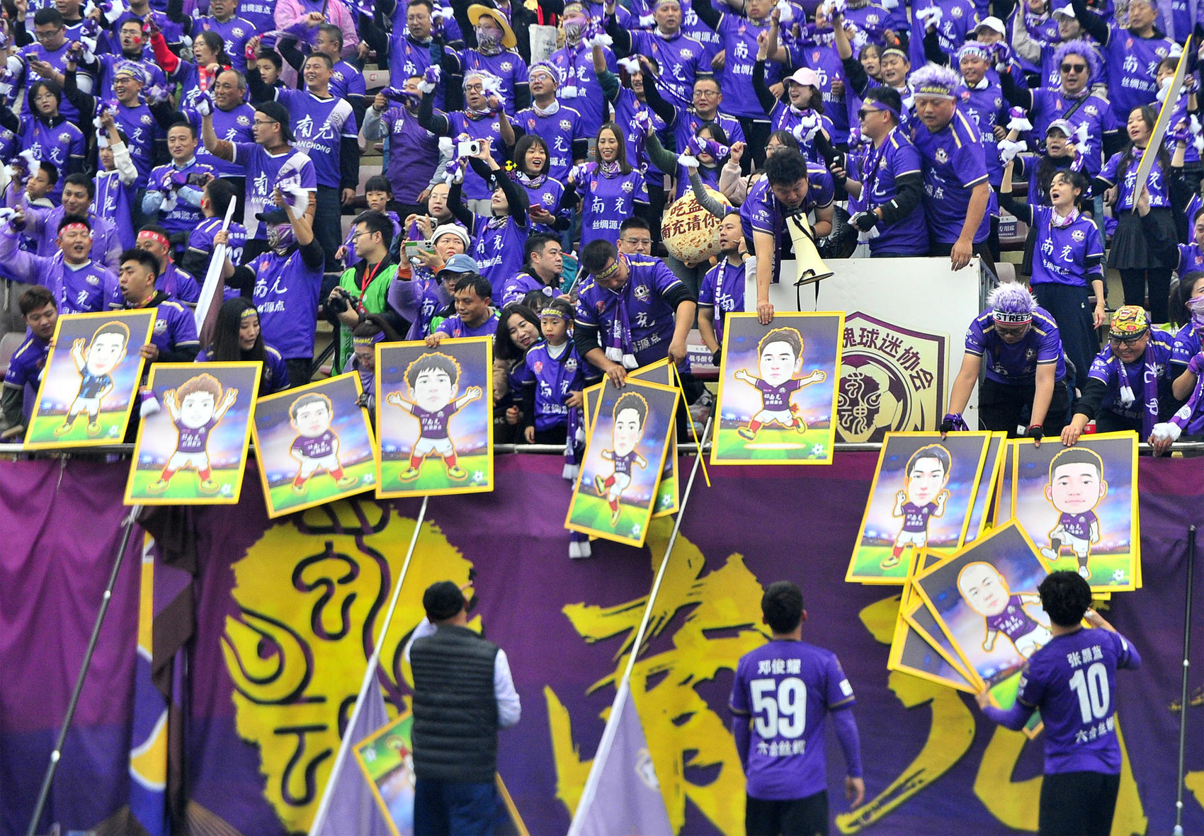 2025年11月15日,南充丝绸源点队对阵遂宁舍得干队比赛结束后,南充球迷将印有球员肖像的漫画赠予球队。C视觉签约摄影师乐校臣