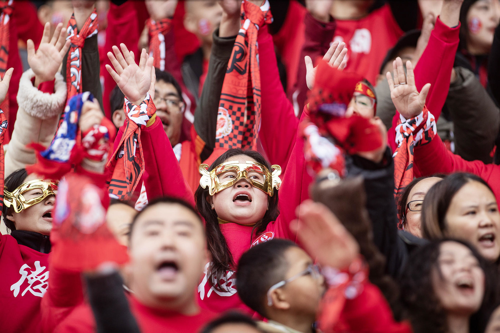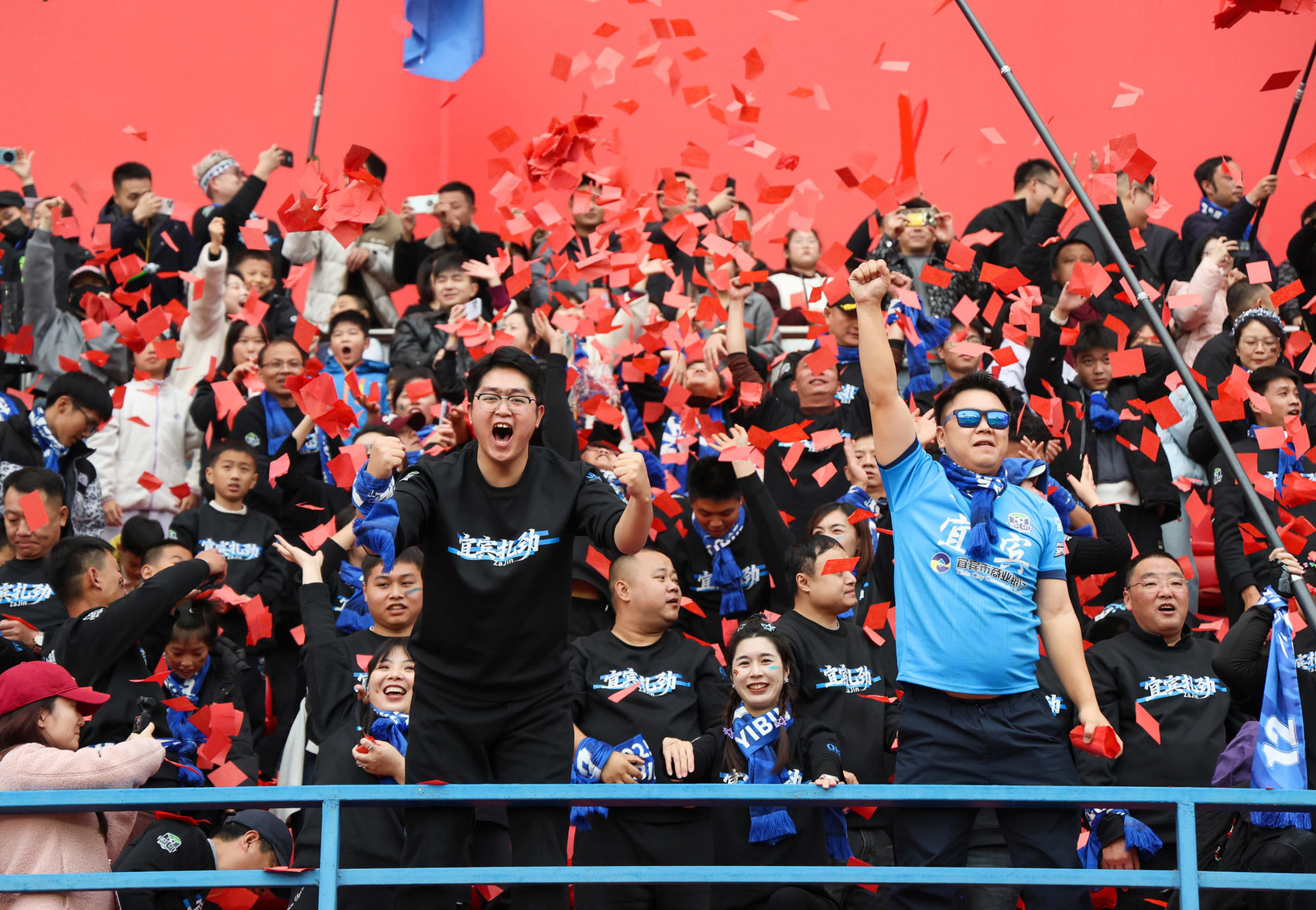 2025年11月23日,宜宾市体育场内,宜宾队以6:0大胜资阳队,球迷欢呼。C视觉签约摄影师 王铁松