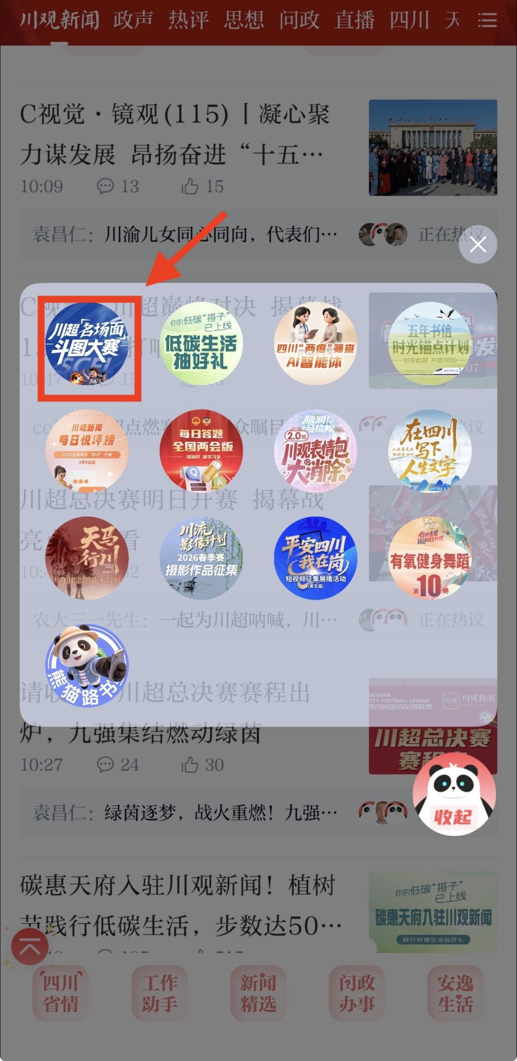 入口一:打开川观新闻App,首页右下角悬浮球选择“斗图大赛”按钮,点击进入活动。