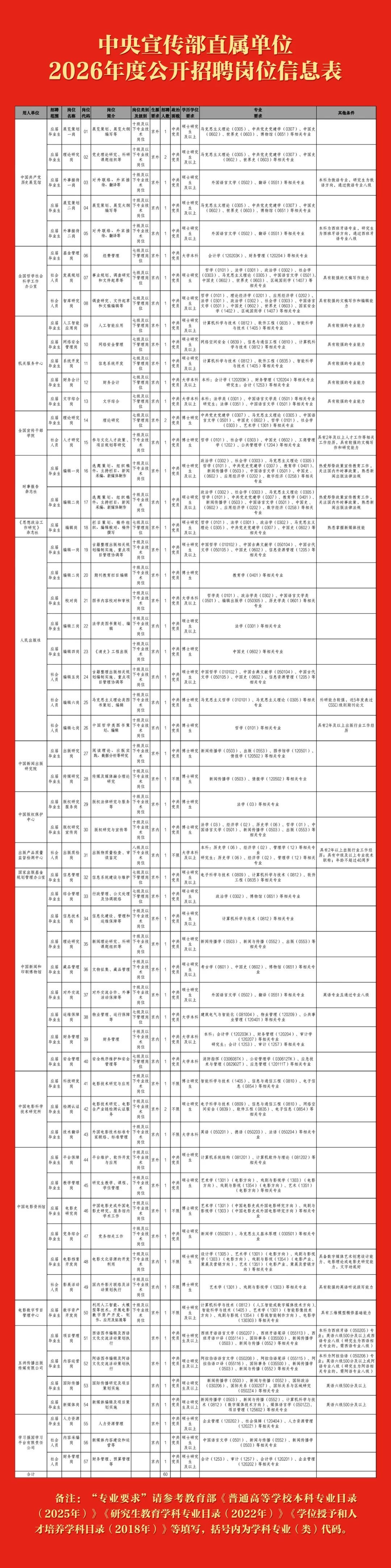 附件:《中央宣传部直属单位2026年度公开招聘岗位信息表》