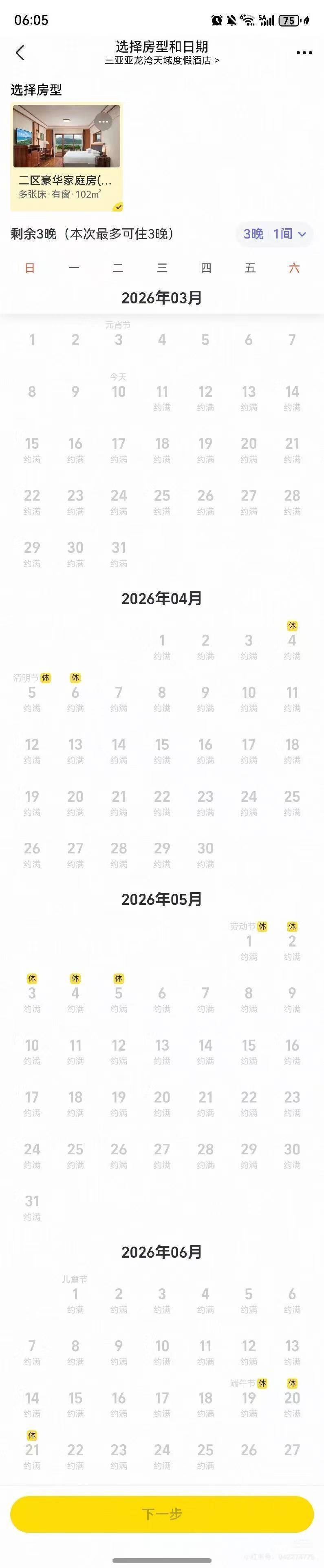 不只是君悦一家。杨女士还囤了另一家陵水海南三正月酒店的套餐,情况同样令人头疼——在平台上,“双十一”购买的几个套餐目前全部显示“约满”,她往后翻了翻日历,一直到4月底,一天都约不上。