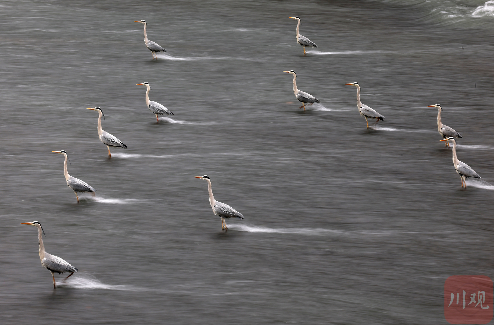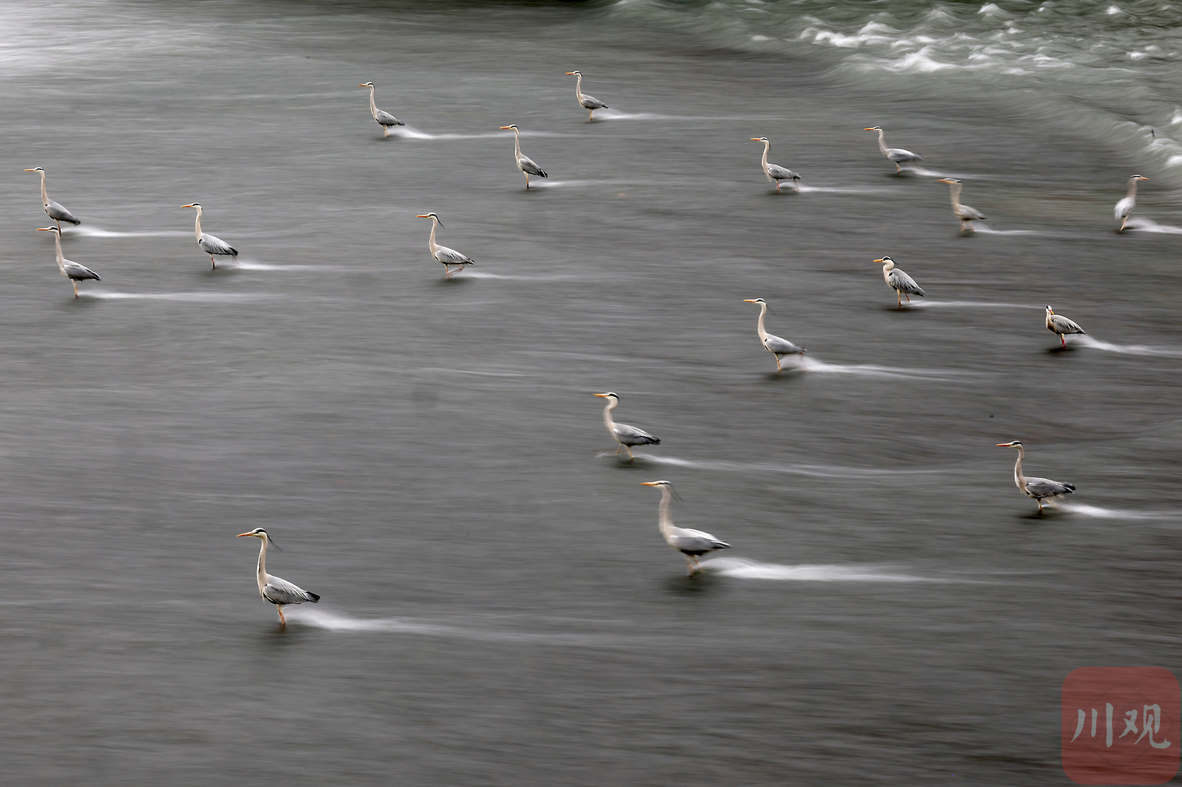 锦江里划水“摸鱼”的灰鹭们。