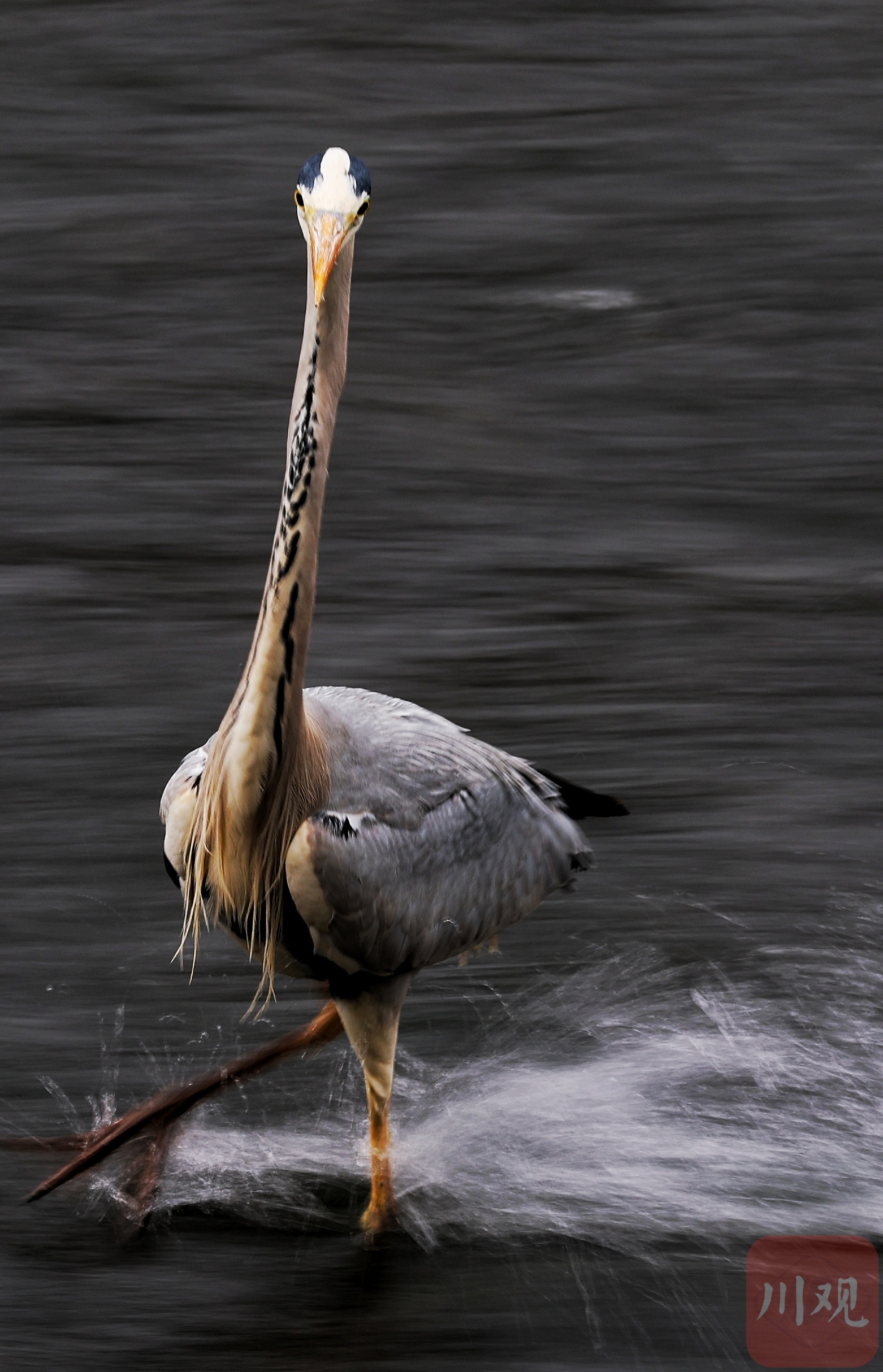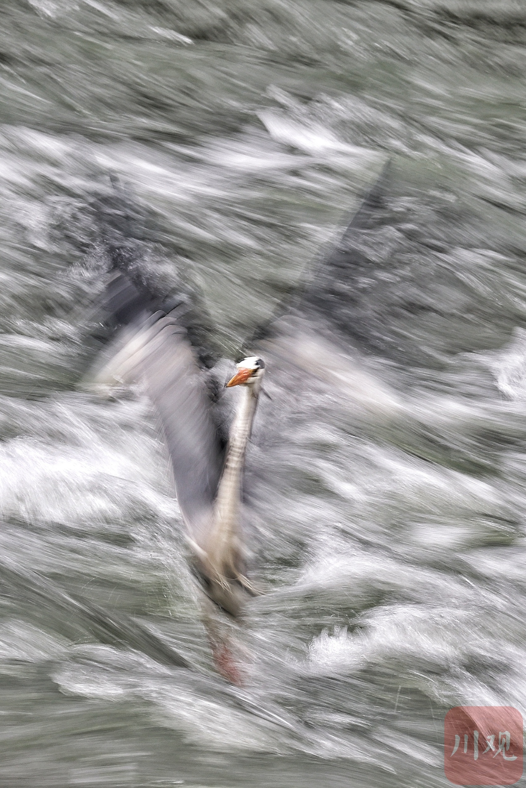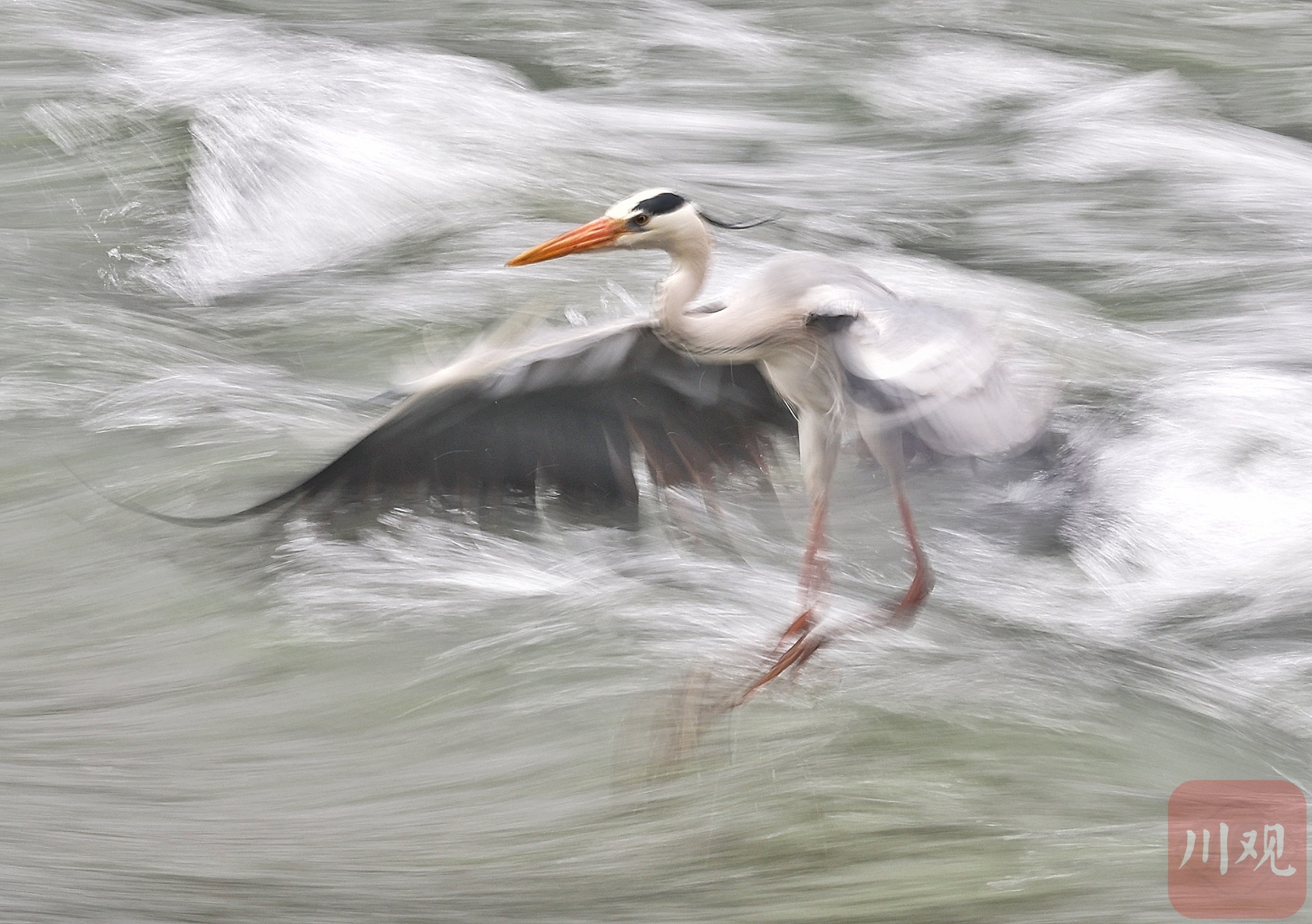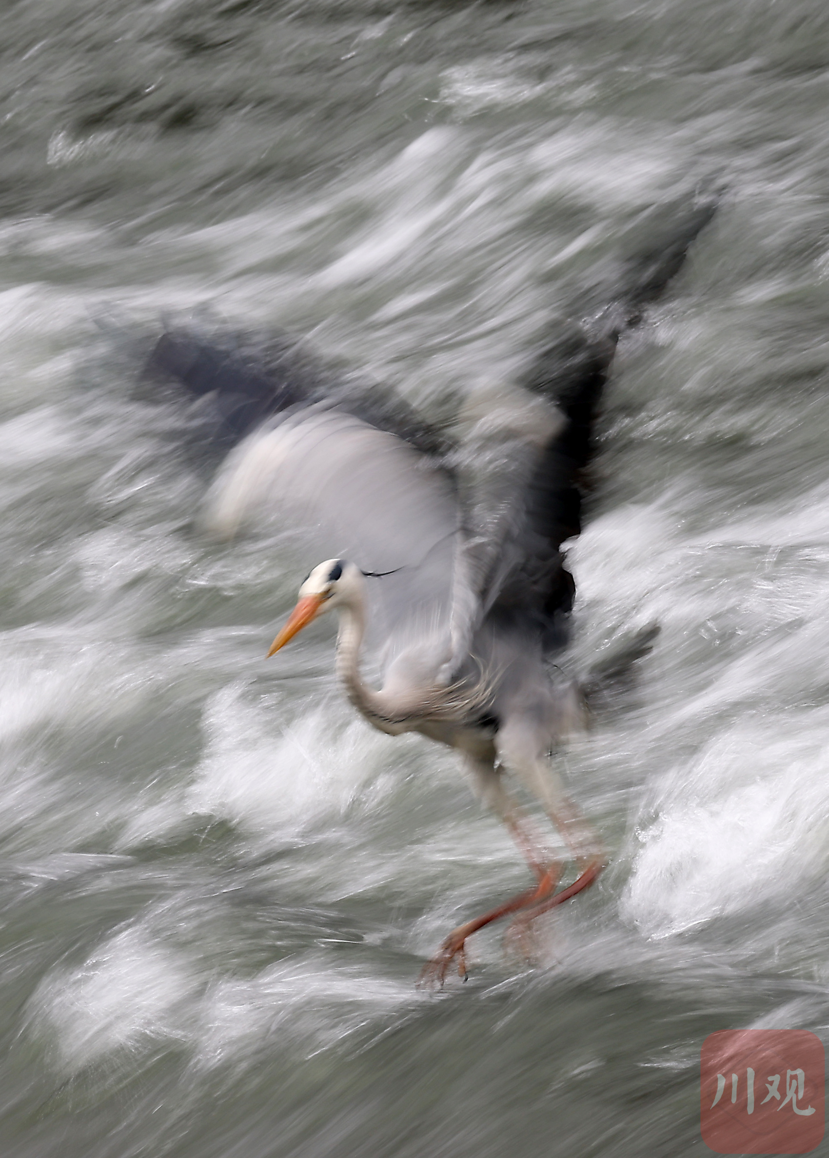 锦江浪涛里捕鱼的灰鹭。
