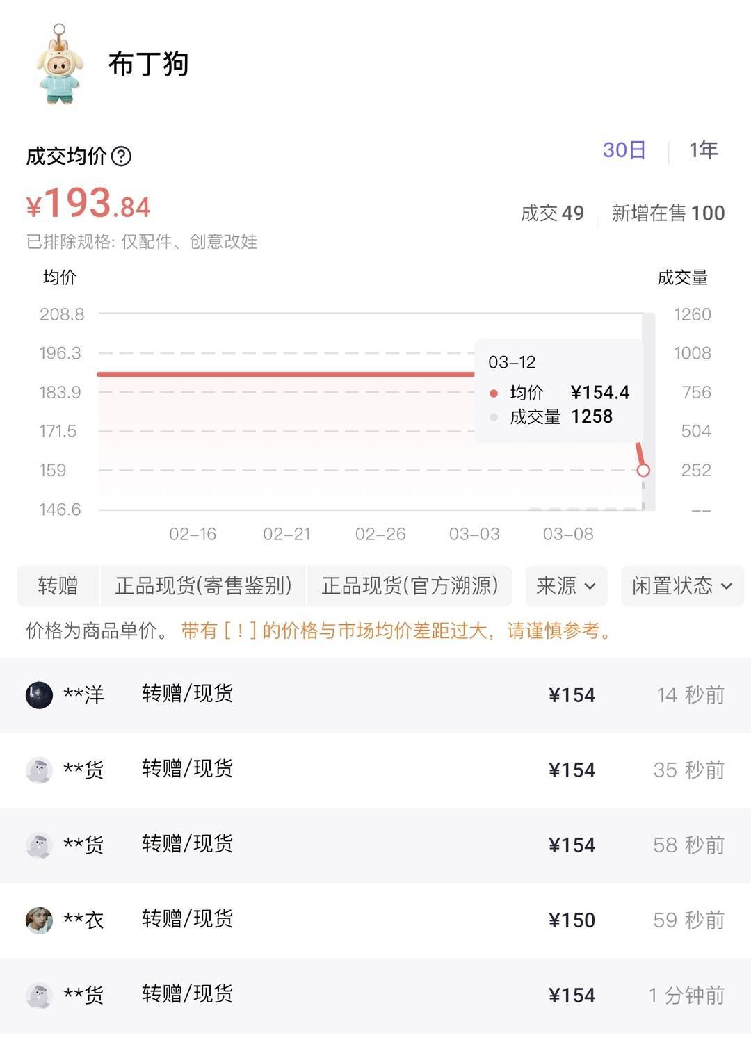 布丁狗成交价低于原价