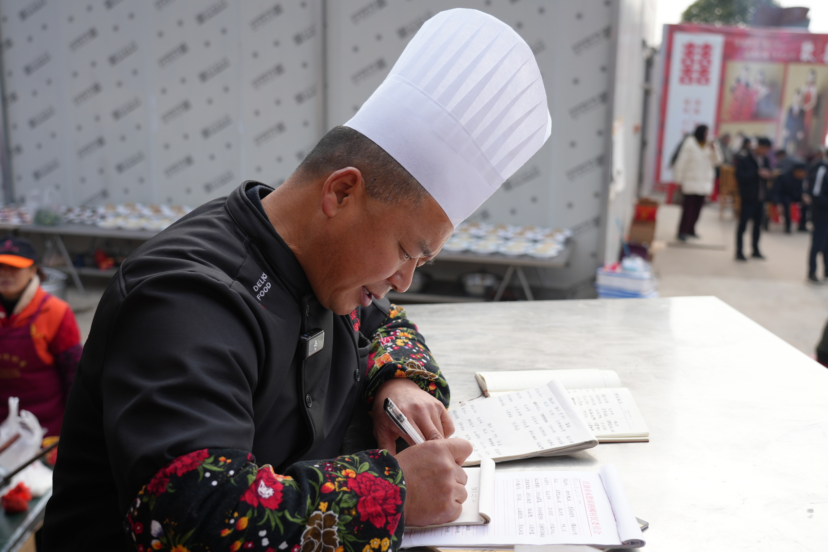 坝坝宴上的菜品由乡厨一手操办。图为江油乡厨许顺华正在准备菜单。