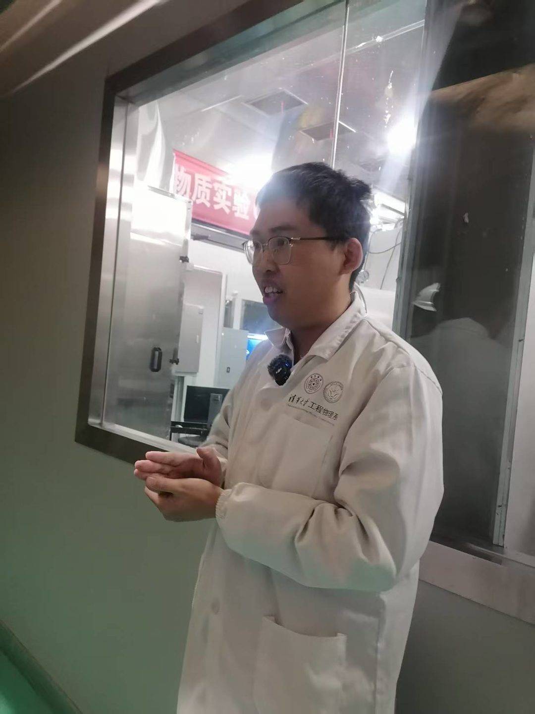徐锐向记者介绍清华大学CDEX实验摄影 张峥