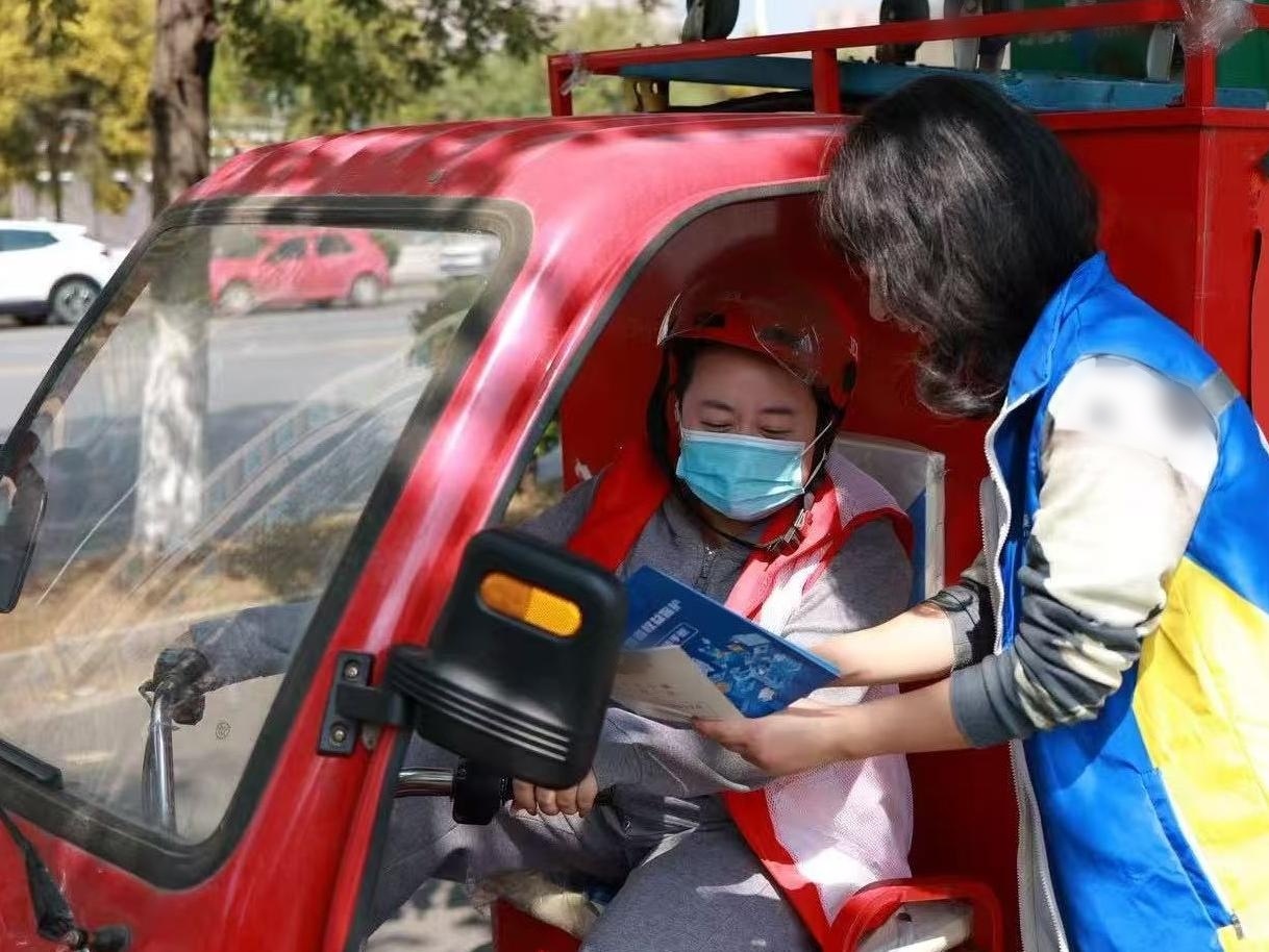 锦泰保险工作人员向快递员等新就业群体开展金融教育宣传。
