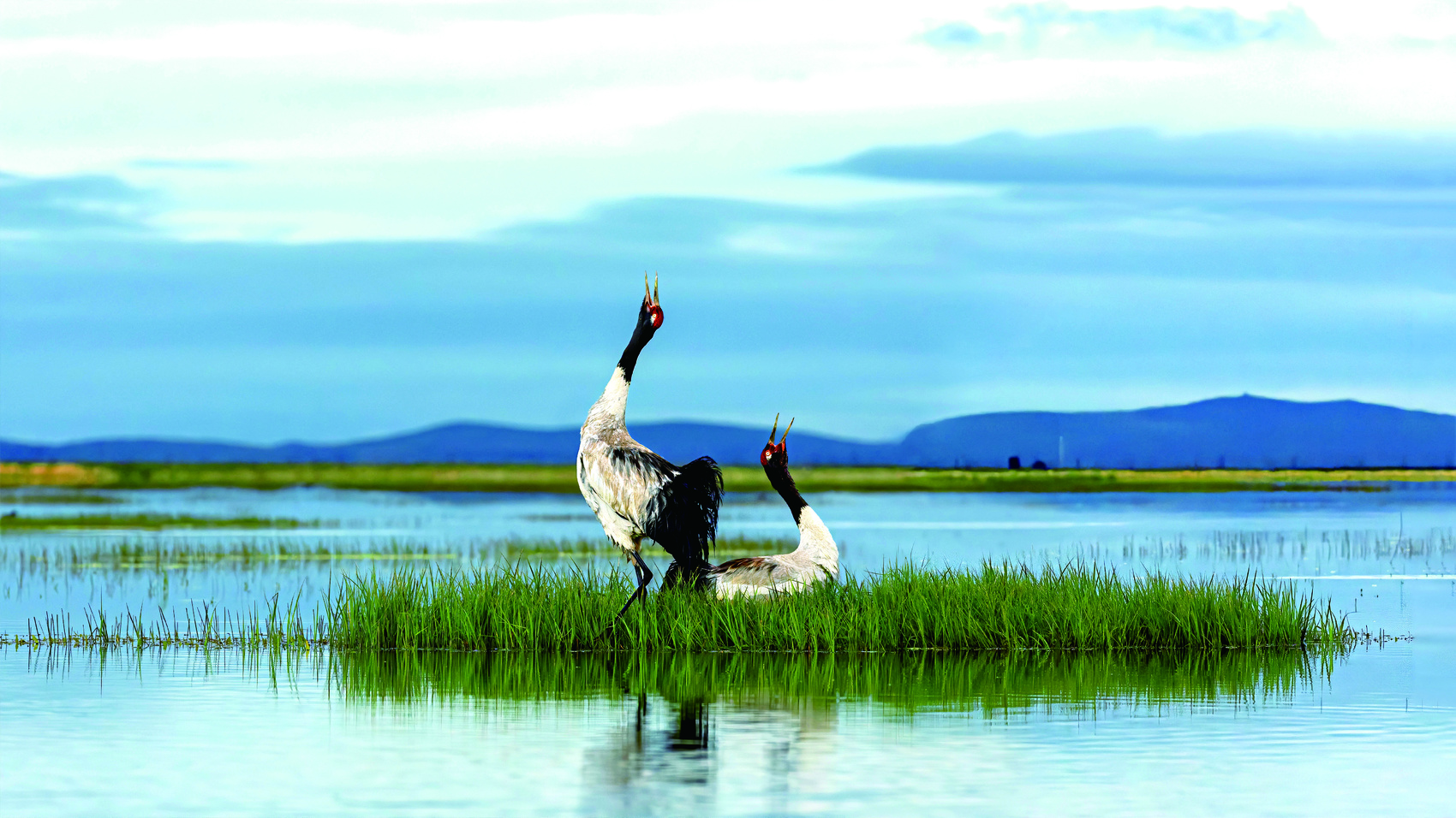 若尔盖湿地黑颈鹤。