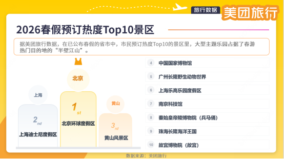 在目的地选择上,四川本地市民展现出对“乐园游”的偏好。美团旅行数据显示,成都市民热衷的Top5景区分别为:北京环球度假区、上海迪士尼度假区、秦始皇帝陵博物院(兵马俑)、广州长隆野生动物世界和珠海长隆海洋王国。
