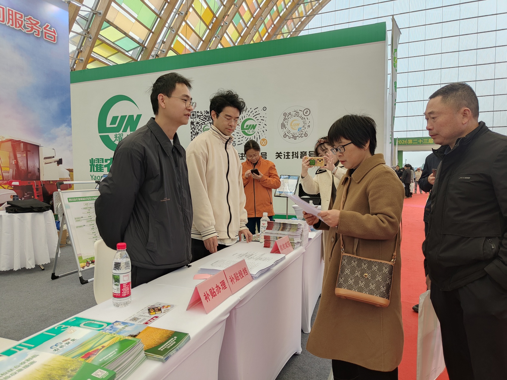 “四川省农机化一站式咨询服务台”前,观众在咨询相关政策。