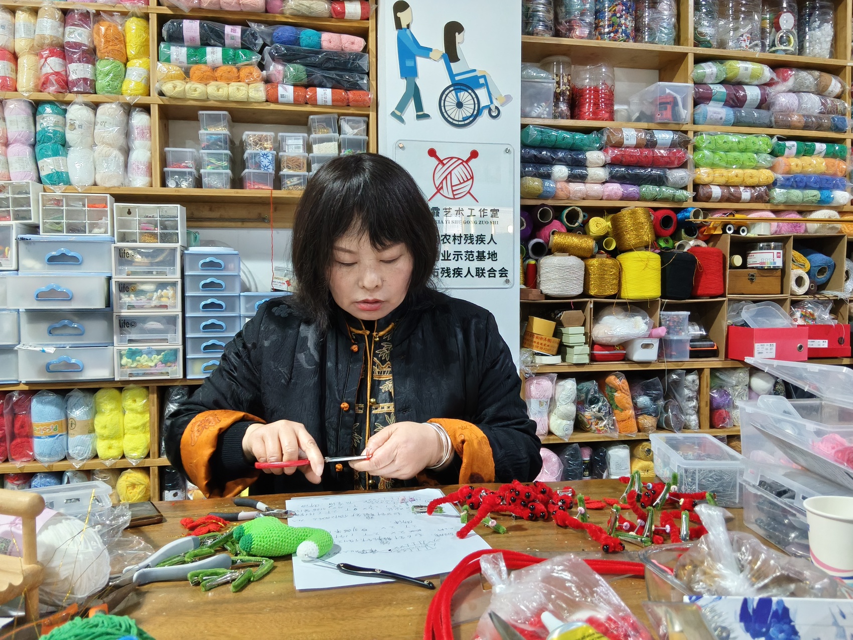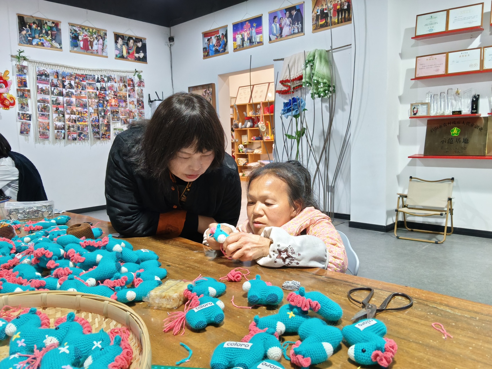 因小儿麻痹症致残的鲁义君就是冯燕霞编织坊的受益人之一。她曾因行走不便长期困于家中,在当地残联的帮助下,她加入了冯燕霞编织坊,生活迎来全新转机。鲁义君说:“跟着冯老师学钩织后,每月能增收600多元,每完成一件作品,心里都满是成就感。”