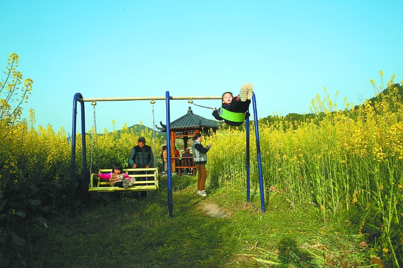 “花经济”正在阆中更多乡村开花结果。其中,龙潭社区依托区位优势,着力打造“十里桃林”“万亩油菜花海”,积极融入“城郊30分钟旅游圈”发展格局。目前,社区已建成观景平台、生态停车场、彩色游步道等配套设施,发展民宿、农家乐及特色小吃店10余家,逐步形成集赏花体验、休闲观光、餐饮住宿于一体的乡村旅游业态。