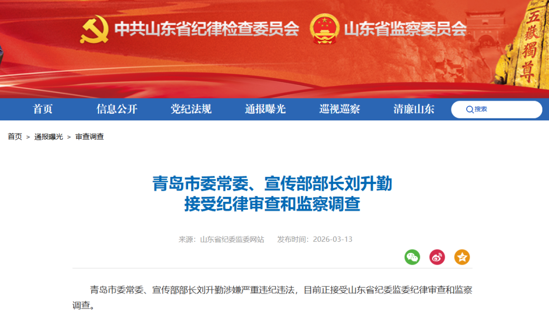 青岛市委常委、宣传部部长刘升勤涉嫌严重违纪违法,目前正接受山东省纪委监委纪律审查和监察调查。