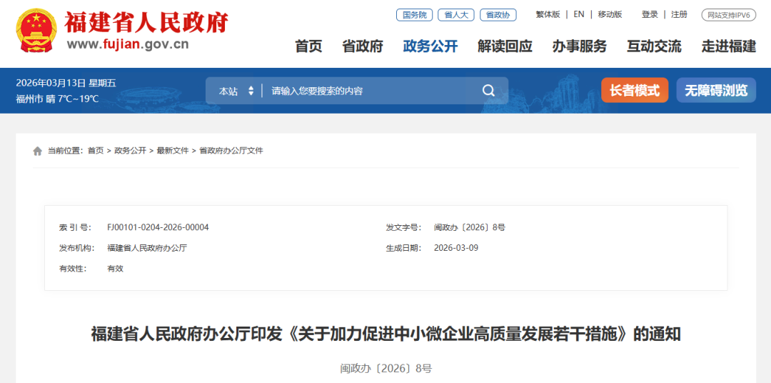 闽政办〔2026〕8号