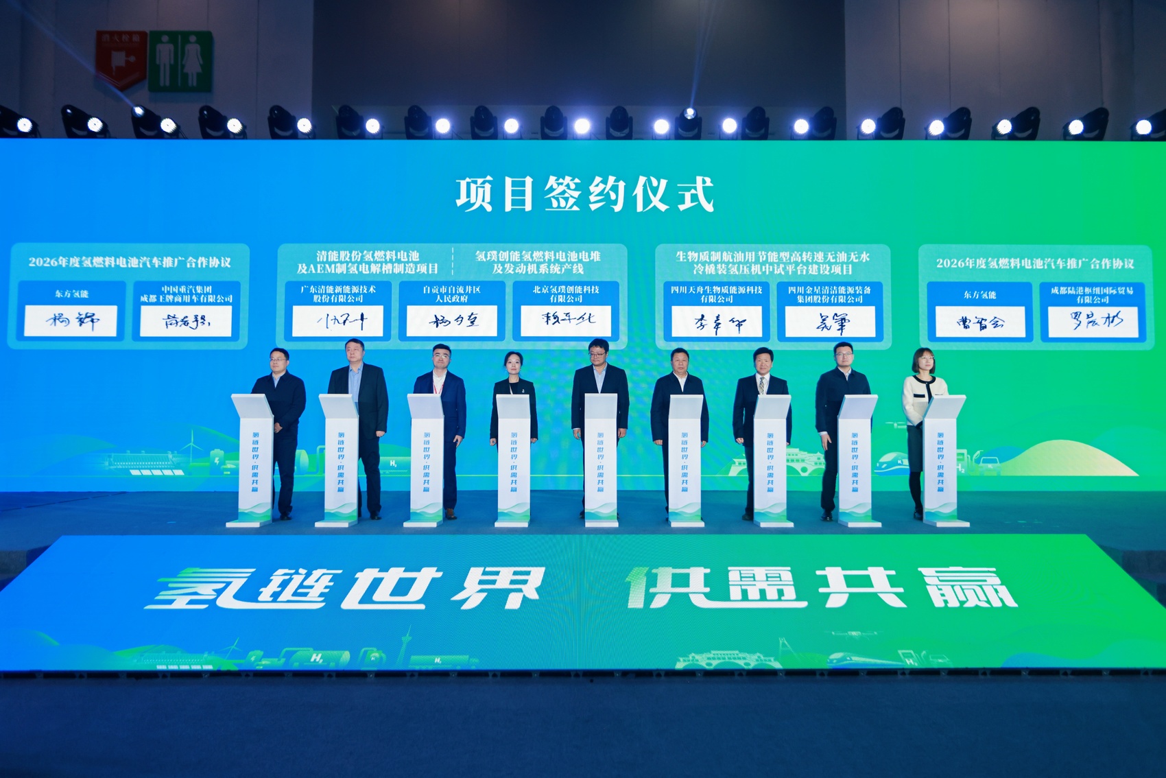 在当日的大会供需采购项目签约环节,自流井区与广东清能股份、北京氢璞创能达成合作签约。根据合作内容,两家企业将在自流井区建设生产基地,引入生产线开展技术攻关,布局燃料电池、PEM/AEM电解槽等核心装备研发制造,填补当地相关领域产业空白,带动氢能产业链上下游配套企业集聚。企业方表示,自流井区的产业规划、配套条件及政务服务效率,是此次合作落地的重要考量因素。