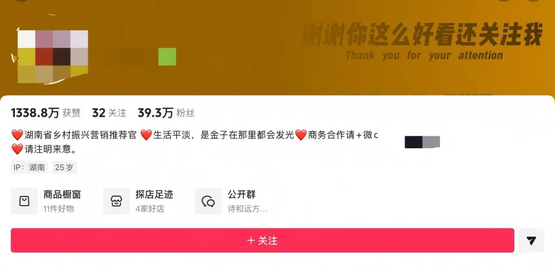记者注意到,该账号主页标注为“湖南省乡村振兴营销推荐官”,粉丝为39.3万。今年2月以来,其已发布多条此类文案的视频,热度颇高,评论区不乏质疑声。