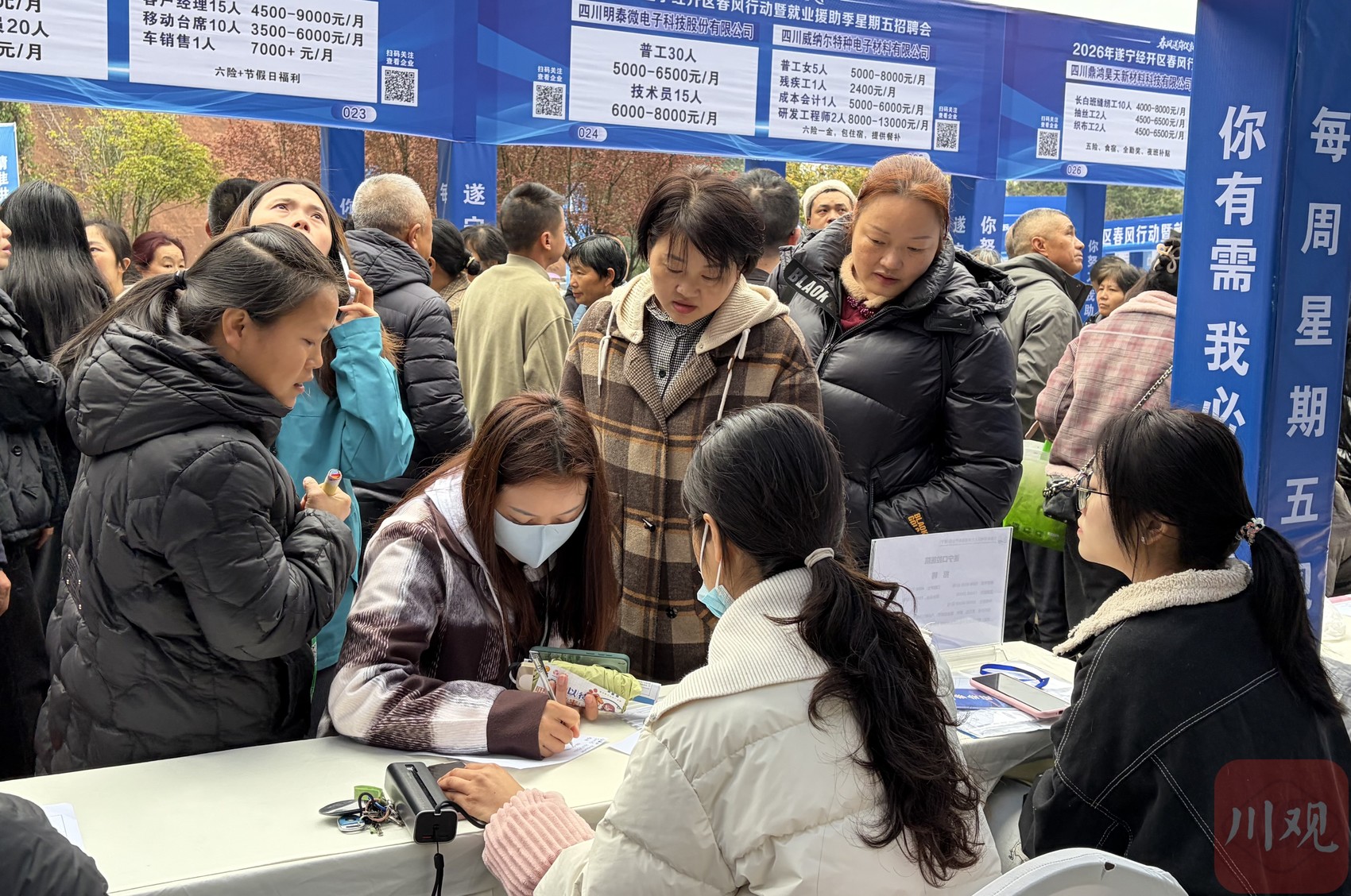 3月13日,以“春风送岗促就业·真情相助暖民心”为主题的2026年遂宁经开区“春风行动”暨就业援助季星期五招聘会,在遂宁市就业创业服务中心广场举行。138家企业携5500余个优质岗位亮相,通过“现场+云端”双线联动,为求职者送上“就业礼包”。