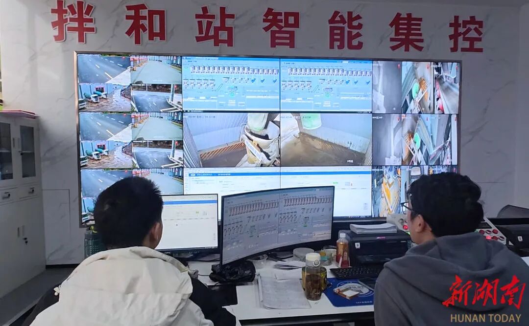 “中央厨房”的大屏上,料仓、出料口等十余个监控点清晰可见,工作人员在电脑上轻轻一点,系统便按照预定配比将砂、石、水等原料送入搅拌机,罐车只需在机器下方的出料口等待120秒,即可接到成型的混凝土。