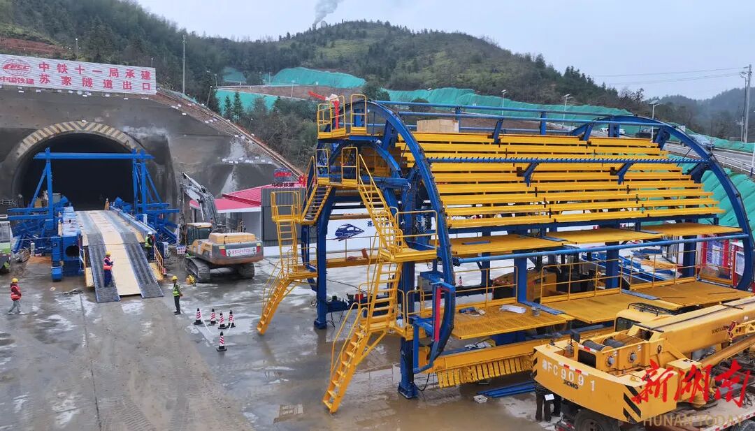 长赣高铁湖南段最长隧道苏家庵隧道项目现场,记者看到,隧道出口掩映于群山之间,现场挖机轰鸣,正紧张进行掘进施工。该隧道最大埋深达125米,浅埋地段下穿公路营业线、花炮厂、民房等建筑,同时穿越断层、富水等复杂地质地段,干扰因素众多,施工难度极高。