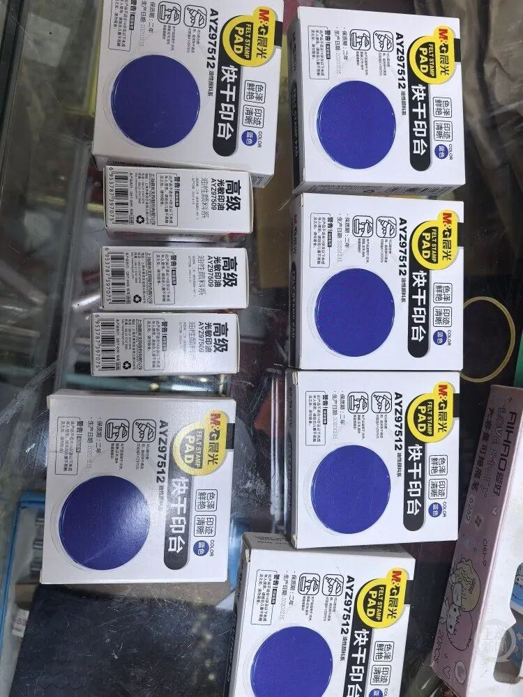 次日,记者在江汉区一家挂有“晨光文具”招牌的文具店内,也购买到过期印油。