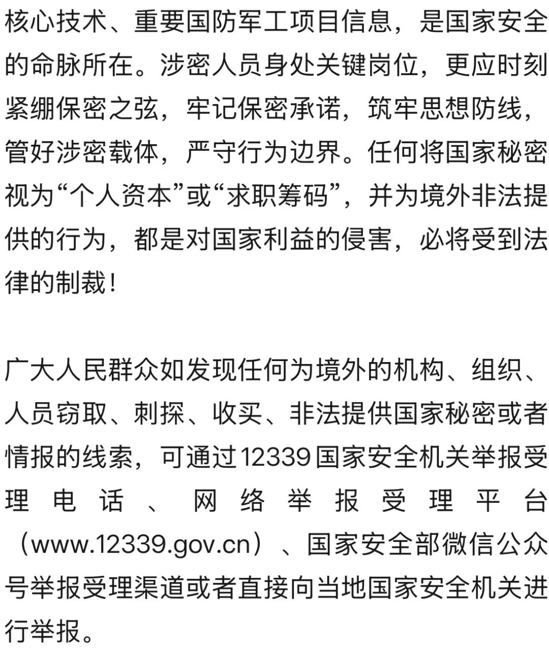 3月13日,国家安全部微信公众号发文《将国家秘密包装成个人设计成果,严惩!》,详情如下: