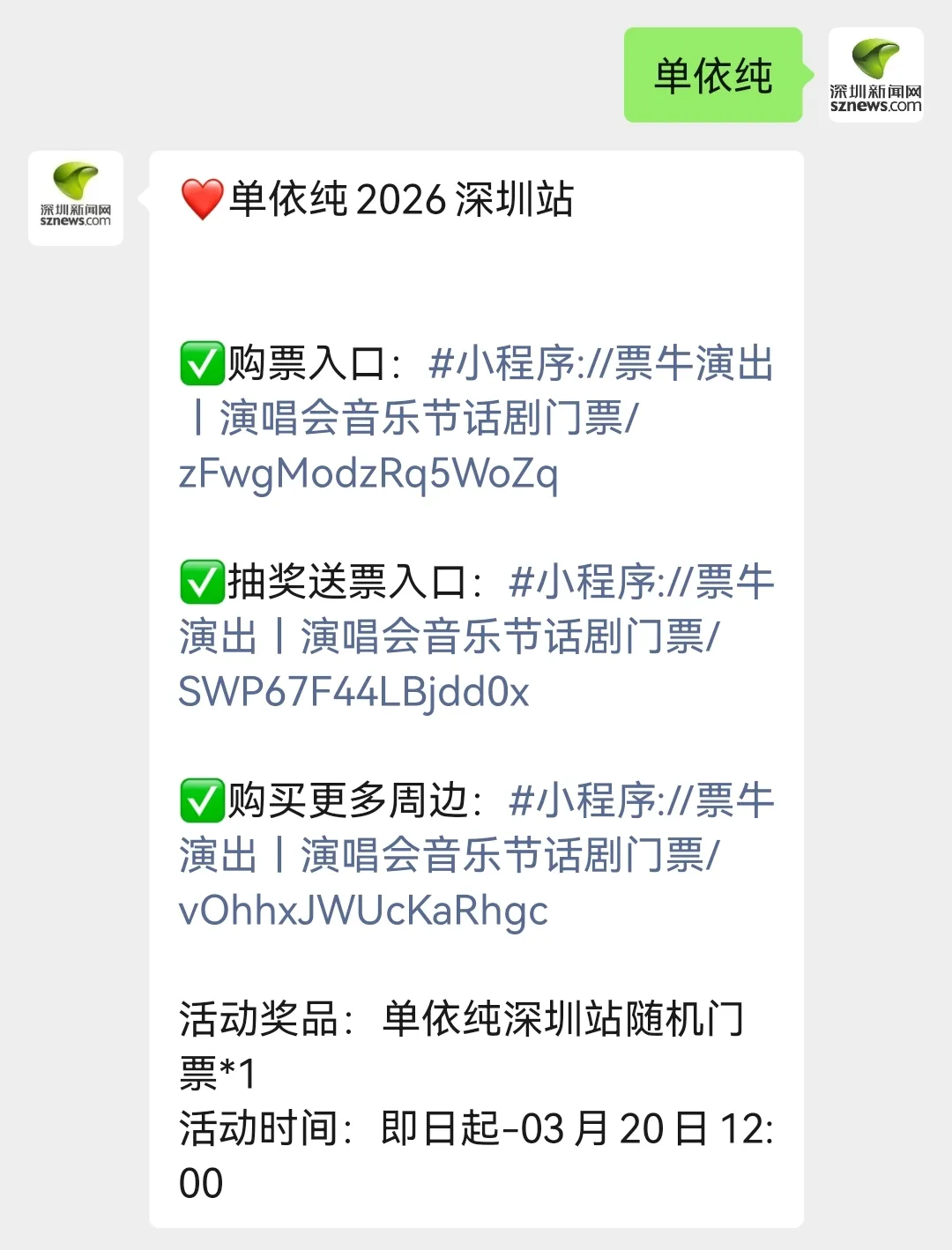 单依纯2026深圳演唱会门票一张
