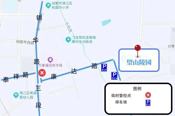 推荐路线:锦华路三段泰祥路路口—康达路—祝国寺望山陵园,全程请听从现场交警及工作人员指挥,有序通行、规范停车。