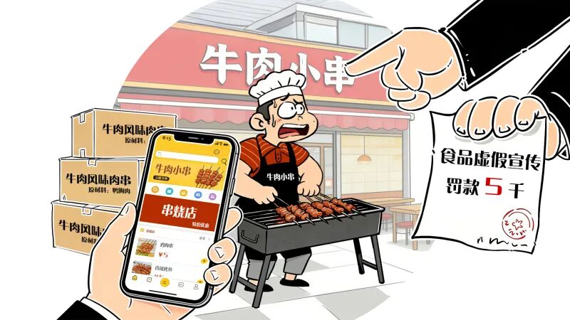 经执法人员进一步核实,该串烧店为降低经营成本、提升产品销量,刻意在美团平台将鸭胸肉制作的“牛肉风味手把肉串”简化标注为“牛肉小串”,未如实告知消费者食材真实成分,通过虚假宣传误导消费者进行购买,其行为已违反《侵害消费者权益行为处罚办法》的有关规定,昌吉市市场监督管理局依法责令当事人改正违法行为,并作出罚款5000元的行政处罚。