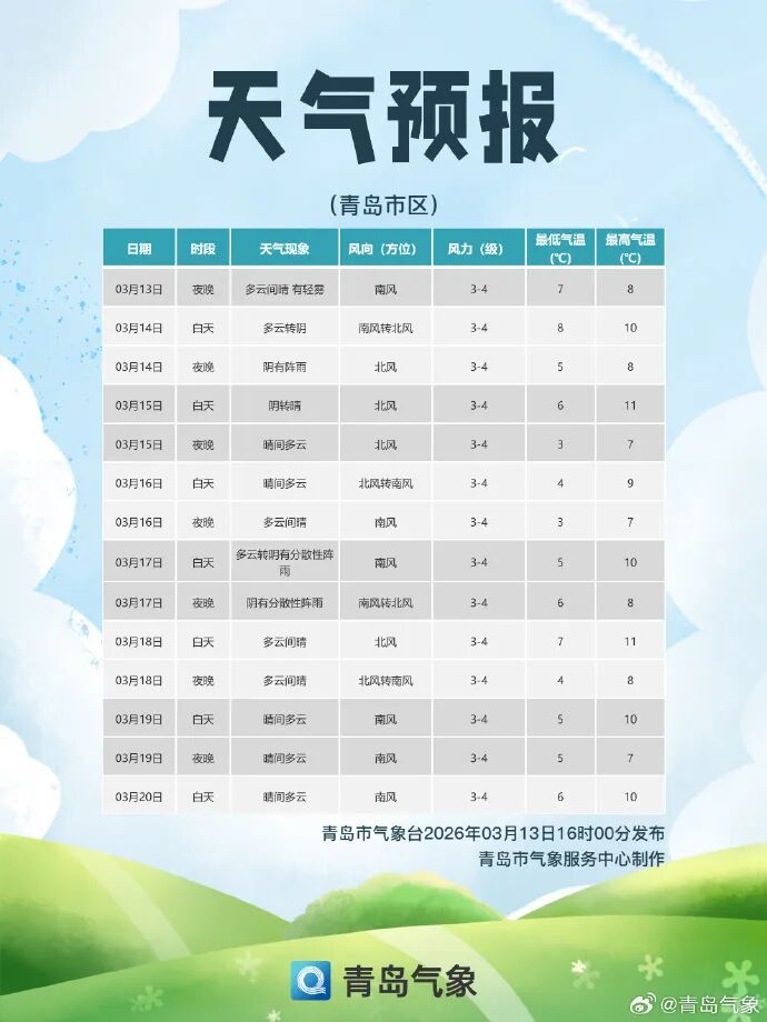 青岛市气象台13日16时发布: