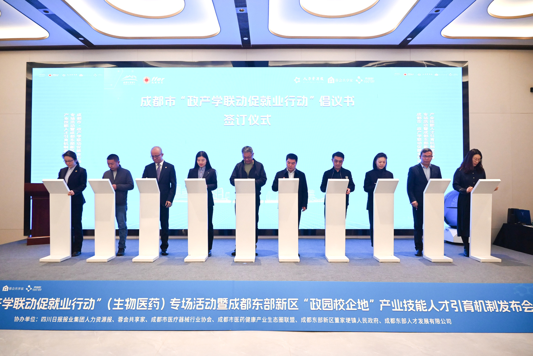 3月13日,成都市“政产学联动促就业行动”(生物医药)专场活动暨成都东部新区“政园校企地”产业技能人才引育机制发布会在成都东部新区未来医学城举行。此次活动落实成都市深化“立园满园”行动要求,汇聚省市相关部门、各区县人社系统、省内外生物医药院校及链主企业代表,聚焦生物医药产业高质量发展需要,协同聚力加强产业人力资源供给助高校毕业生成才,为“镇园之宝”“明日之星”企业引育发展所需的技术技能人才。