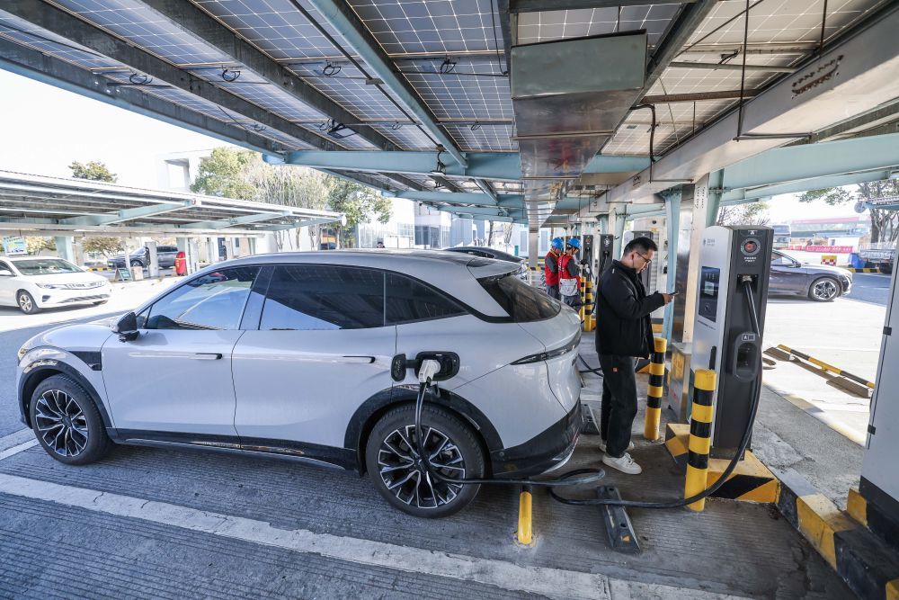 2026年1月7日,在G50沪渝高速长兴服务区,新能源车主使用新安装的大功率充电桩给车充电。新华社记者 徐昱 摄