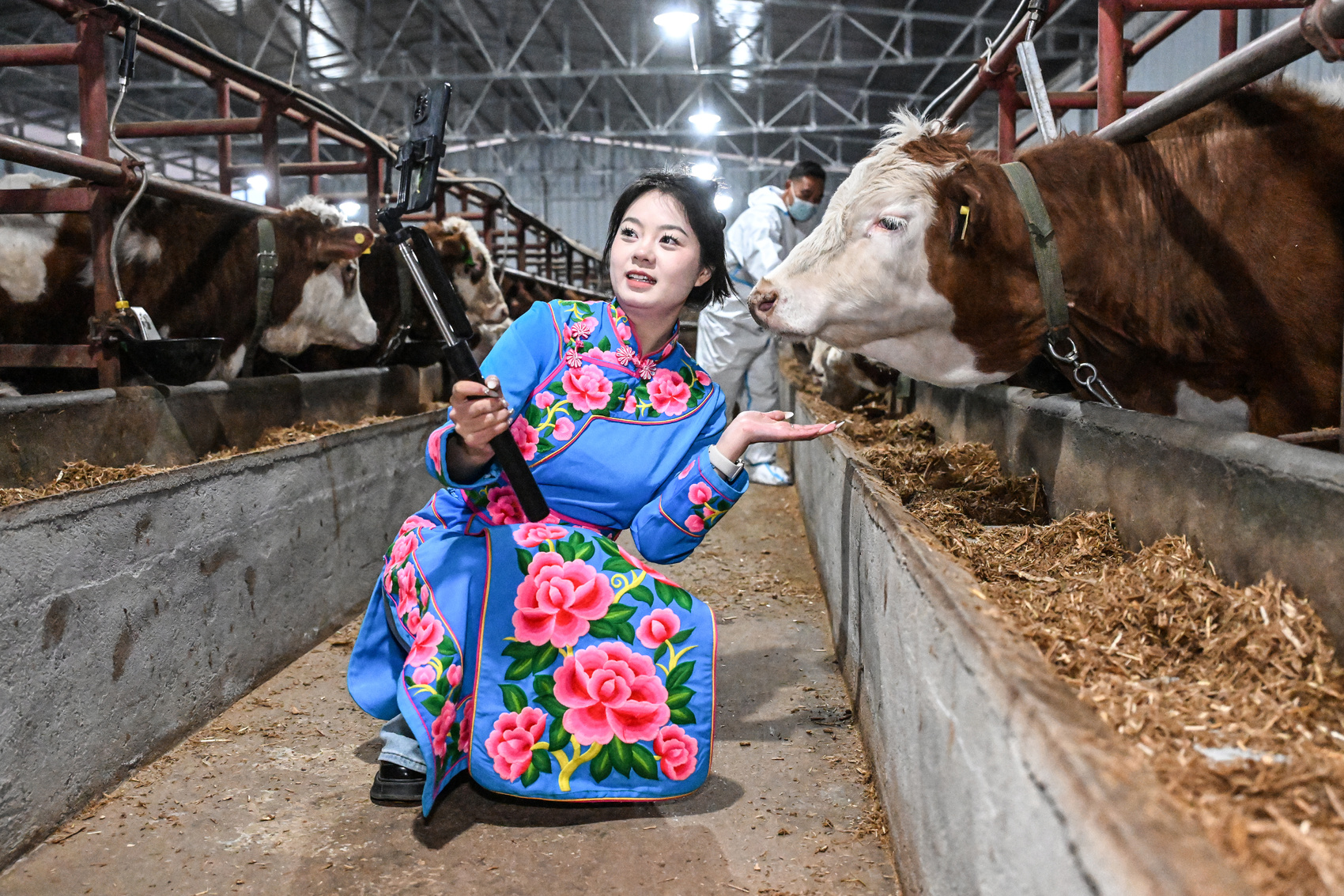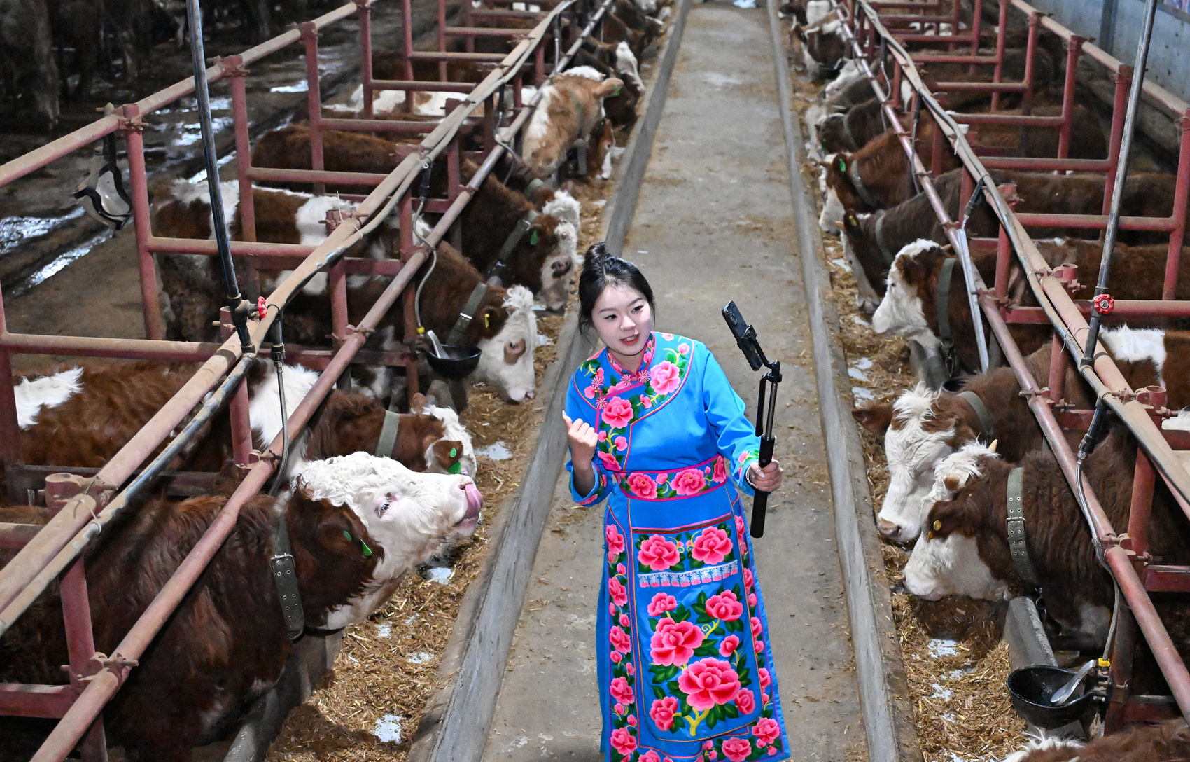 沿着蜿蜒山路前行,绕过20道急弯,便抵达周达村西门塔尔肉牛养殖基地。汶川羌妹子张知英正和父亲张孝美在牛舍忙碌。“我通过直播带货,销售车厘子、青红脆李、核桃等汶川本土特色农产品,同时宣传羌民族文化和村里的产业发展情况,以多品种经营、薄利多销的方式,带动农户增收致富。”