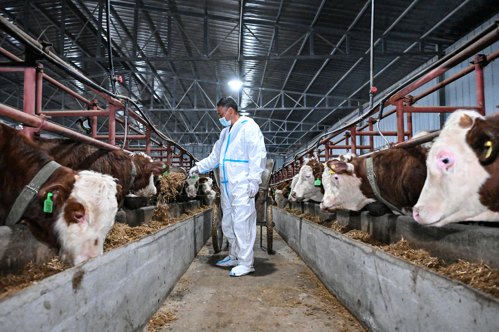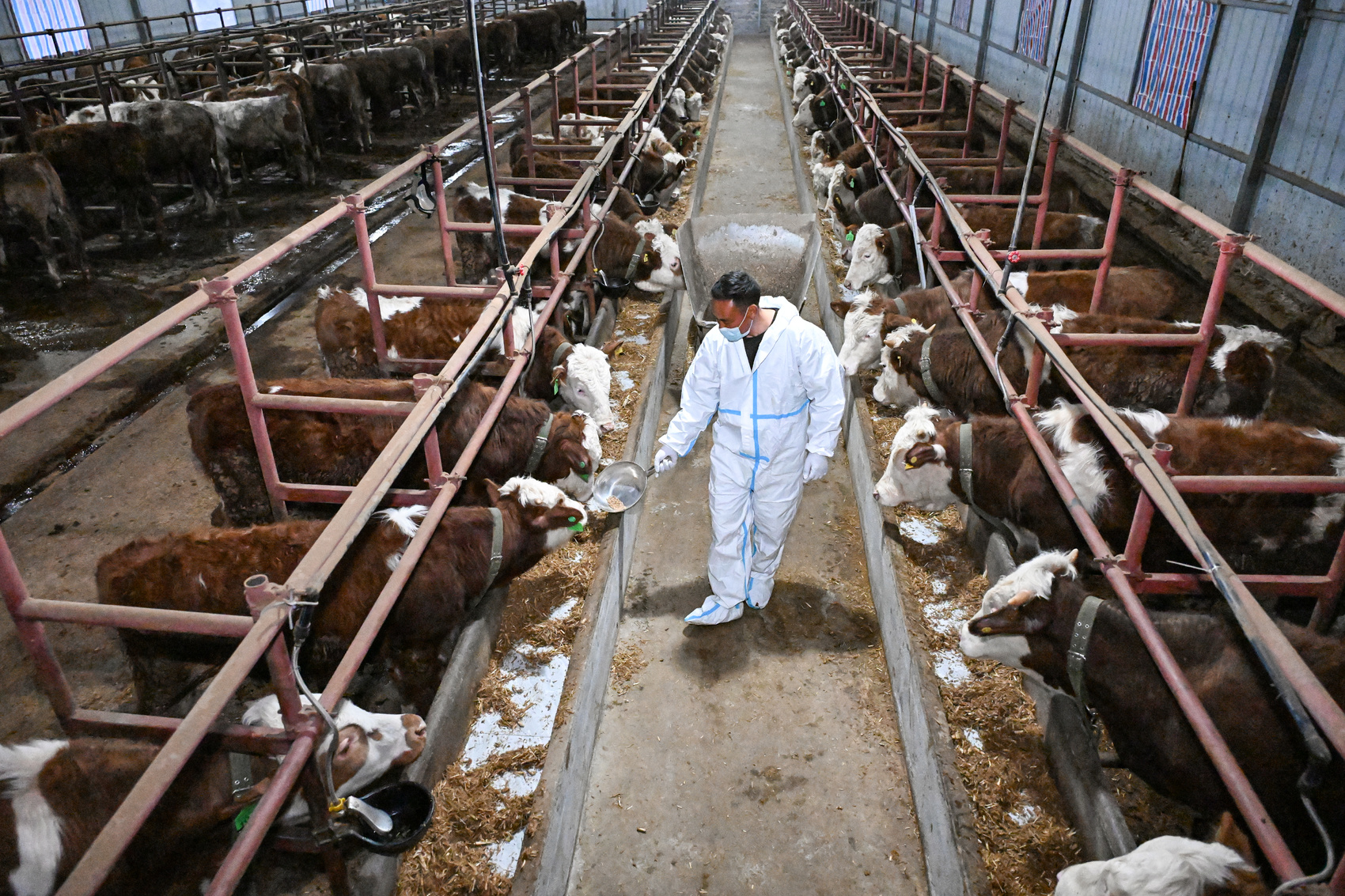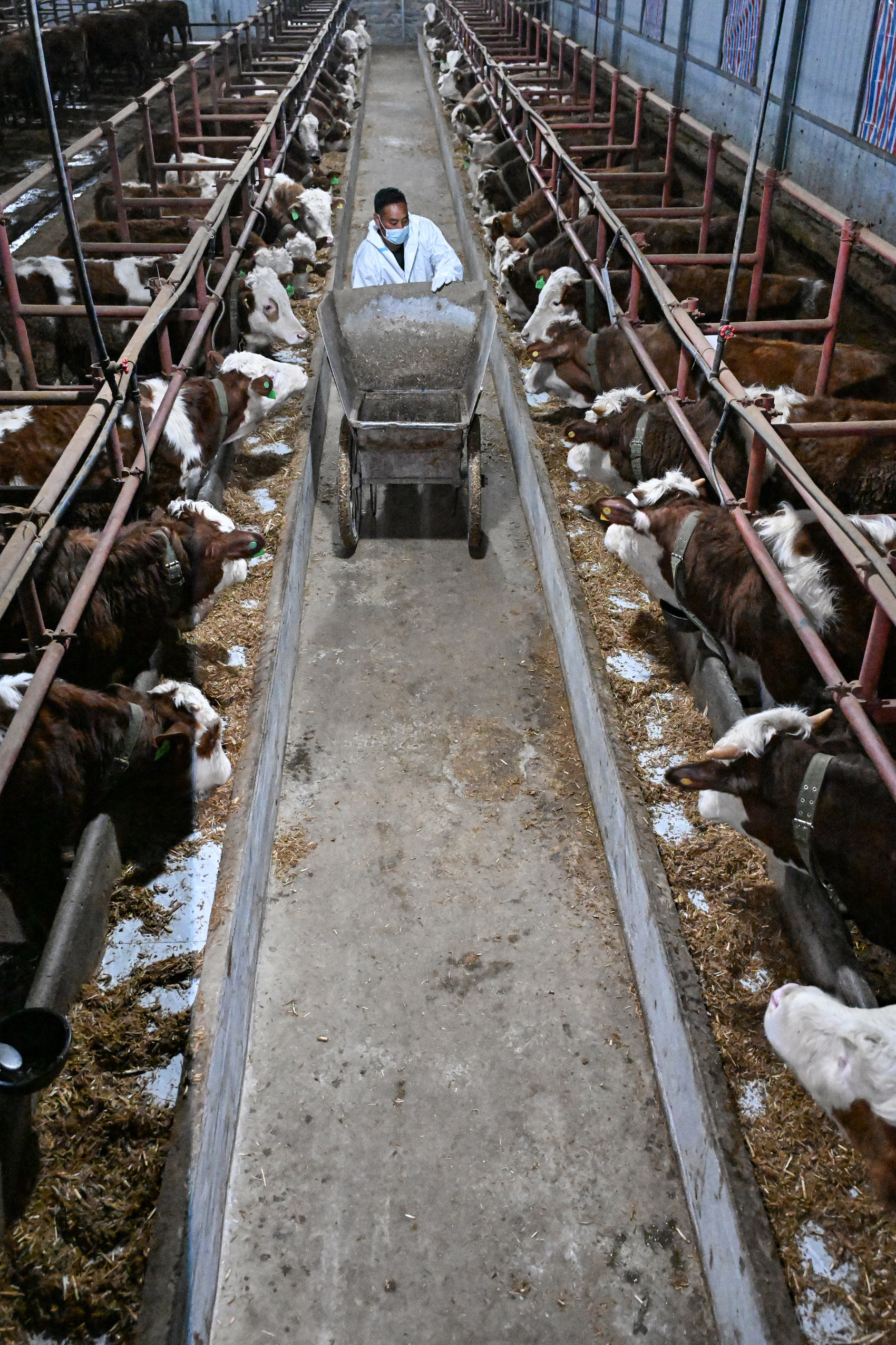 2026年3月13日,在四川省阿坝州汶川县灞州镇周达村,当地村民张孝美正在喂牛。